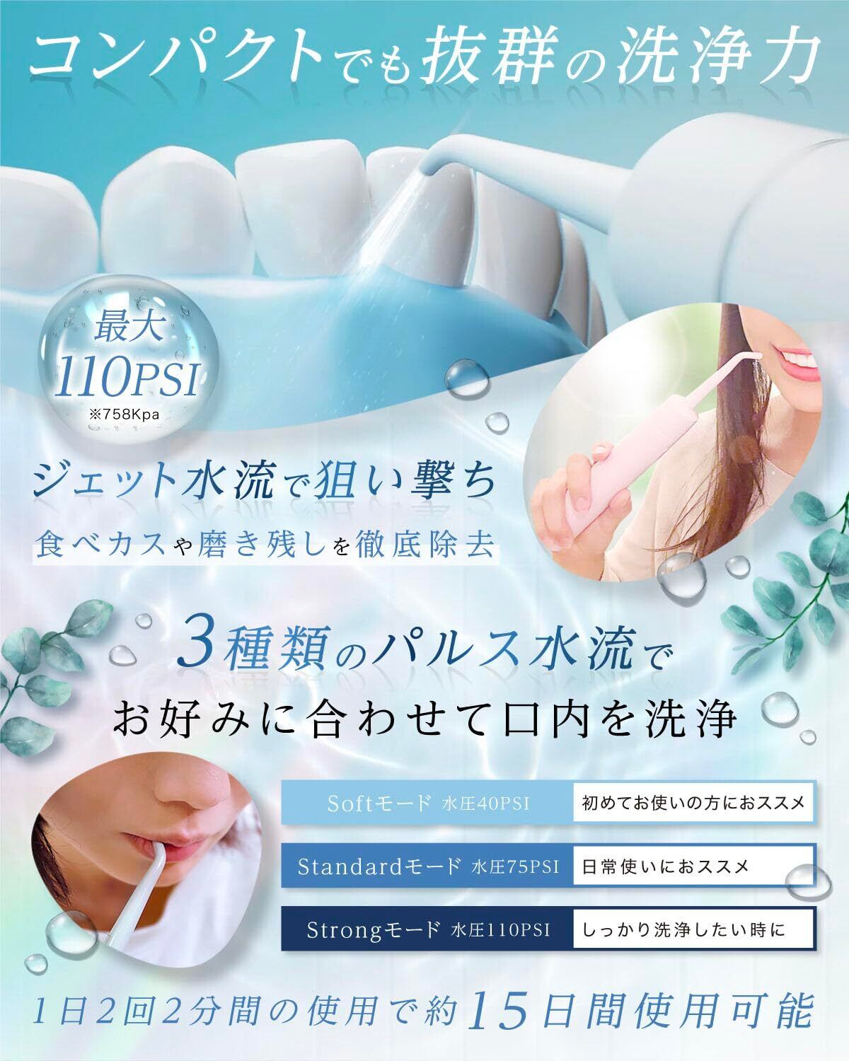 ️【小さくてもパワフルなパルス水流】口腔洗浄器として十分な水圧で歯や歯間の汚れを取り除きます。シンプルな3段階の水流でどなたでも使いやすい製品仕様でございます。