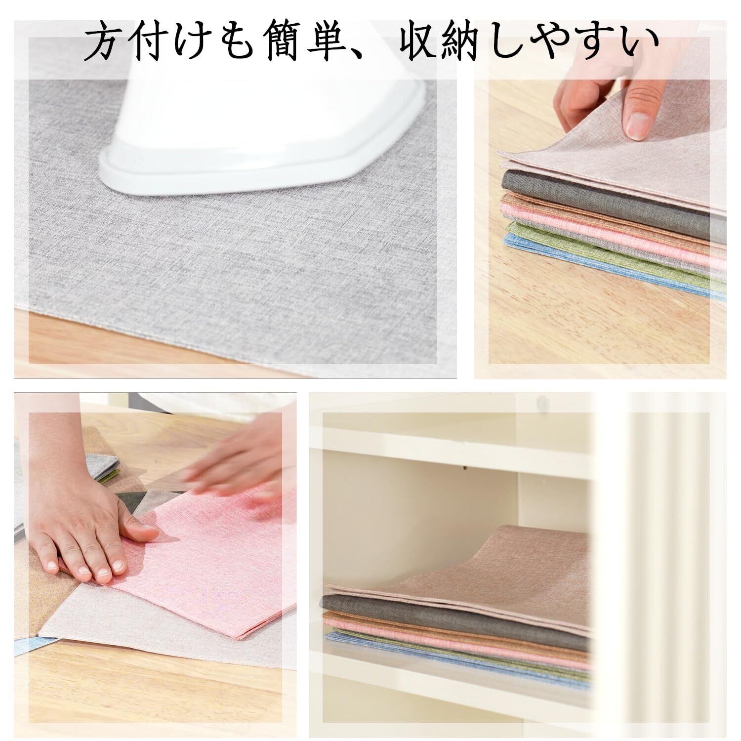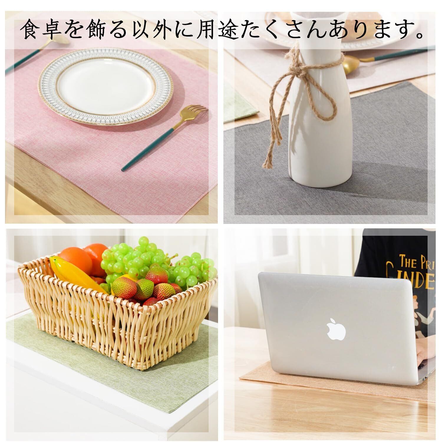 【柔らかい布製素材】丈夫で乾きも早くしわになりにくいランチョンマットです。柔らかいため使わないときは折りたたんだり丸めたりして、コンパクトに収納可能です。環境に優しく、耐熱性が高く、断熱ができて、テーブルを傷付けることなくしっかり保護できます。