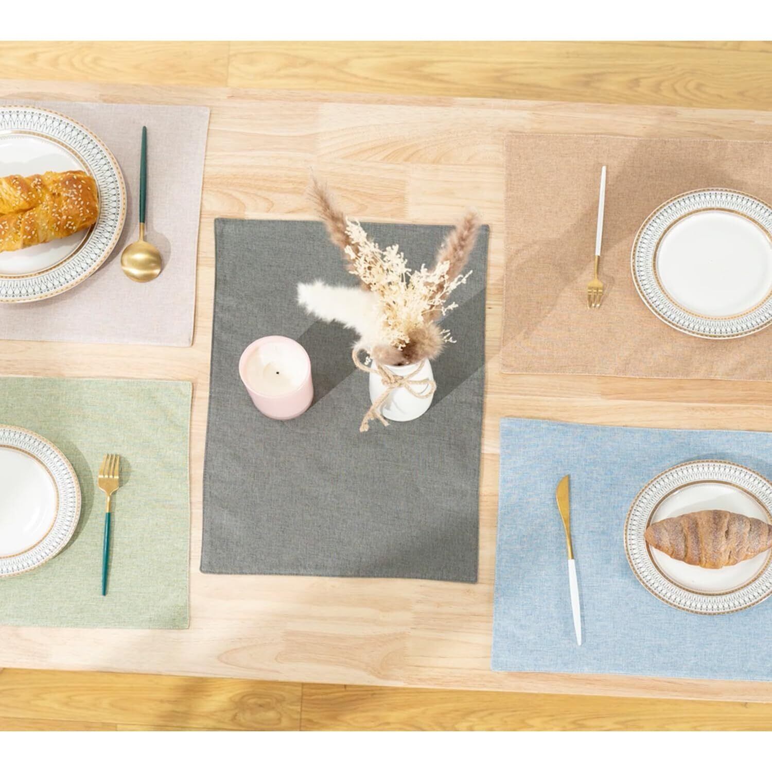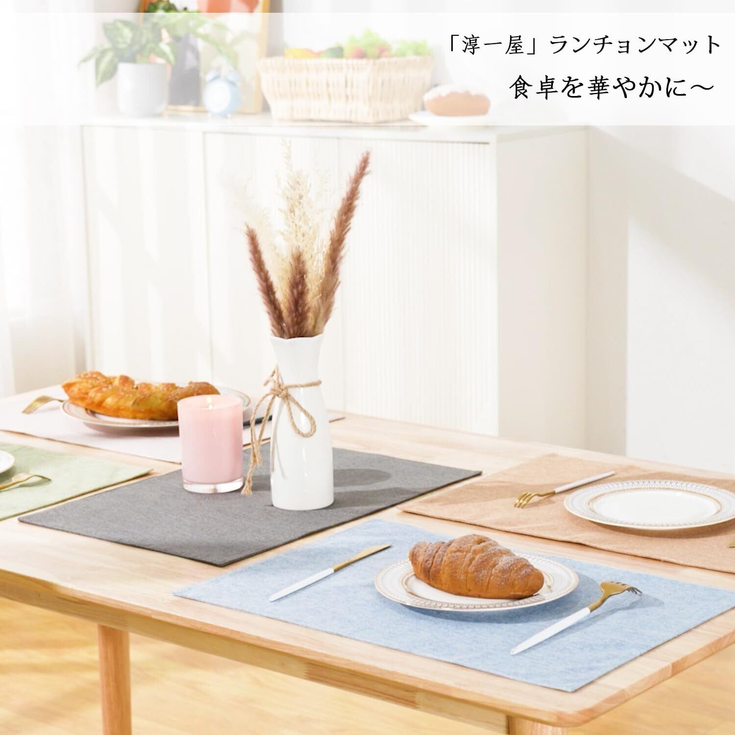 淳一屋 ランチョンマット布製 綿麻 二層生地縫製 丸洗い可 無地 和風 柔軟性 滑り止め 断熱 おしゃれ テーブルマット お手入れ簡単(横48cm×縦33cm,4枚セット,ライトグリーン) | BASE SHOP