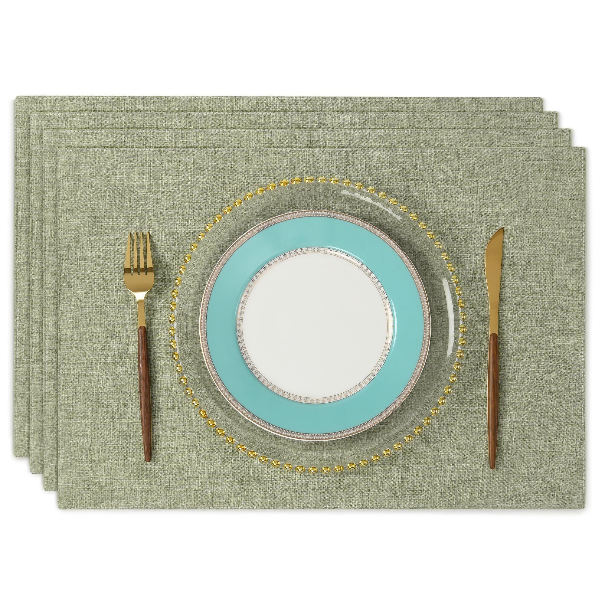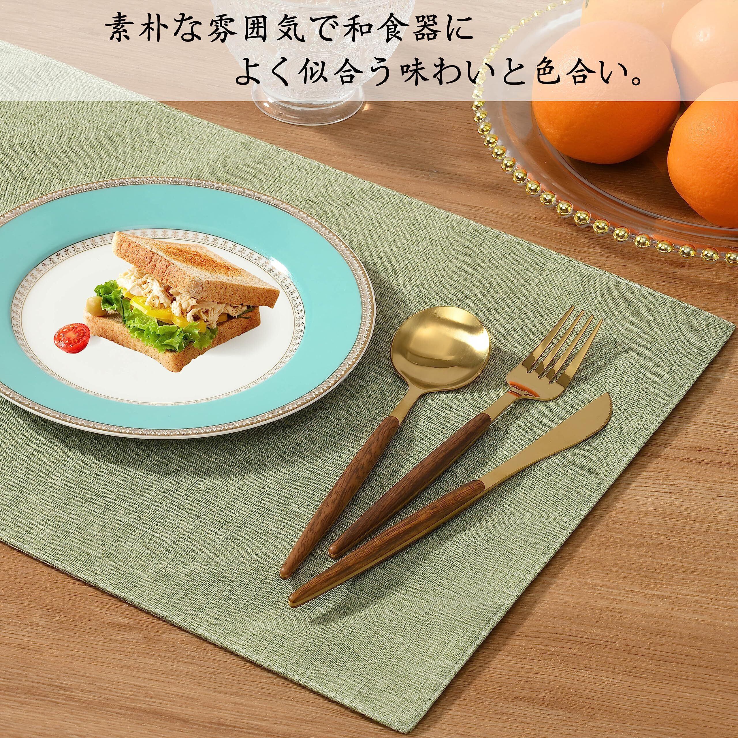 淳一屋 ランチョンマット布製 綿麻 二層生地縫製 丸洗い可 無地 和風 柔軟性 滑り止め 断熱 おしゃれ テーブルマット お手入れ簡単(横48cm×縦33cm,4枚セット,ライトグリーン)