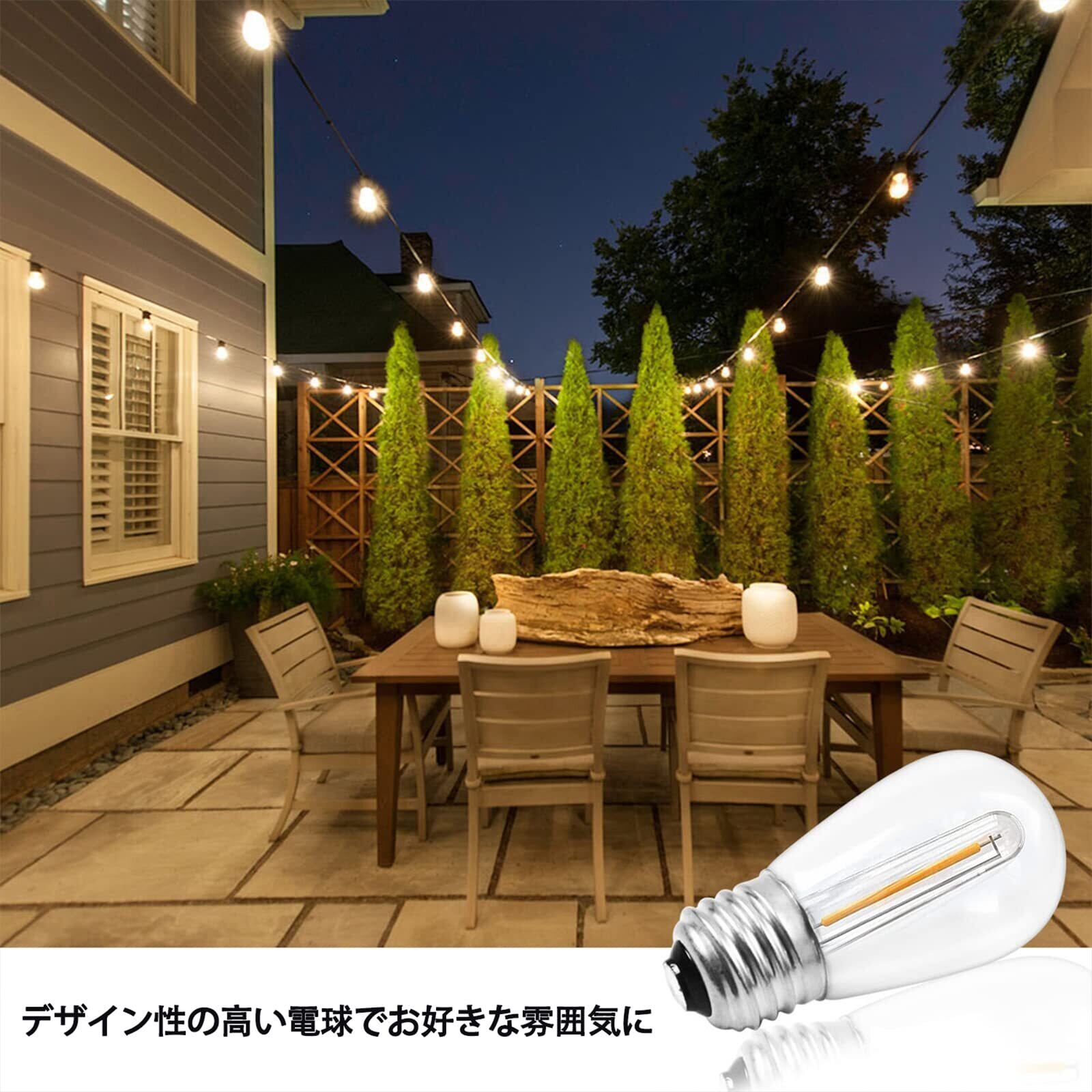 【お好きな雰囲気作る】デザイン性の高い電球でお好きな雰囲気に、屋外でも使用できる実用性とデザイン性を兼ね備えたストリングライト。シンプルにまっすぐ並べたり、少したわませてニュアンスを楽しんだりと、空間に合わせてお使いいただけます。