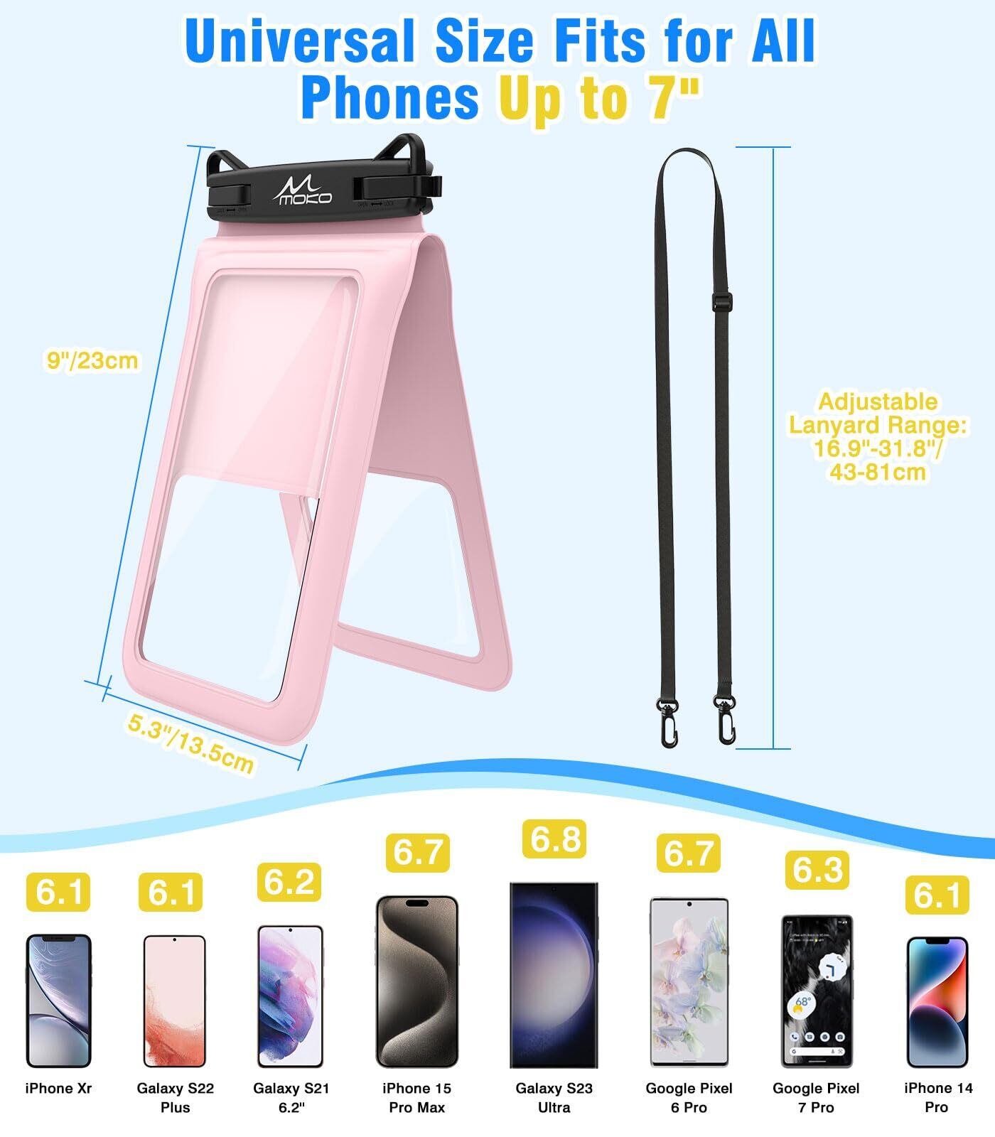 MoKo スマホ防水ケース 2個セット タブル収納ケース IP68完全防水 ビニール製 2台スマホ/クレジットカード/現金/鍵など共に収納対応 iPhone16 Pro Max/15/14/13/Galaxy S23 Ultra/S22/S21 Ultraなど6.7インチ以下のスマホに対応 タッチパネル操作可 首掛けストラップ付 浴室/お風呂/プール 海水浴 Black&Pink | BASE SHOP