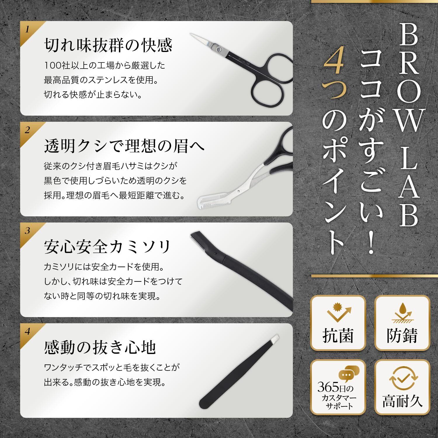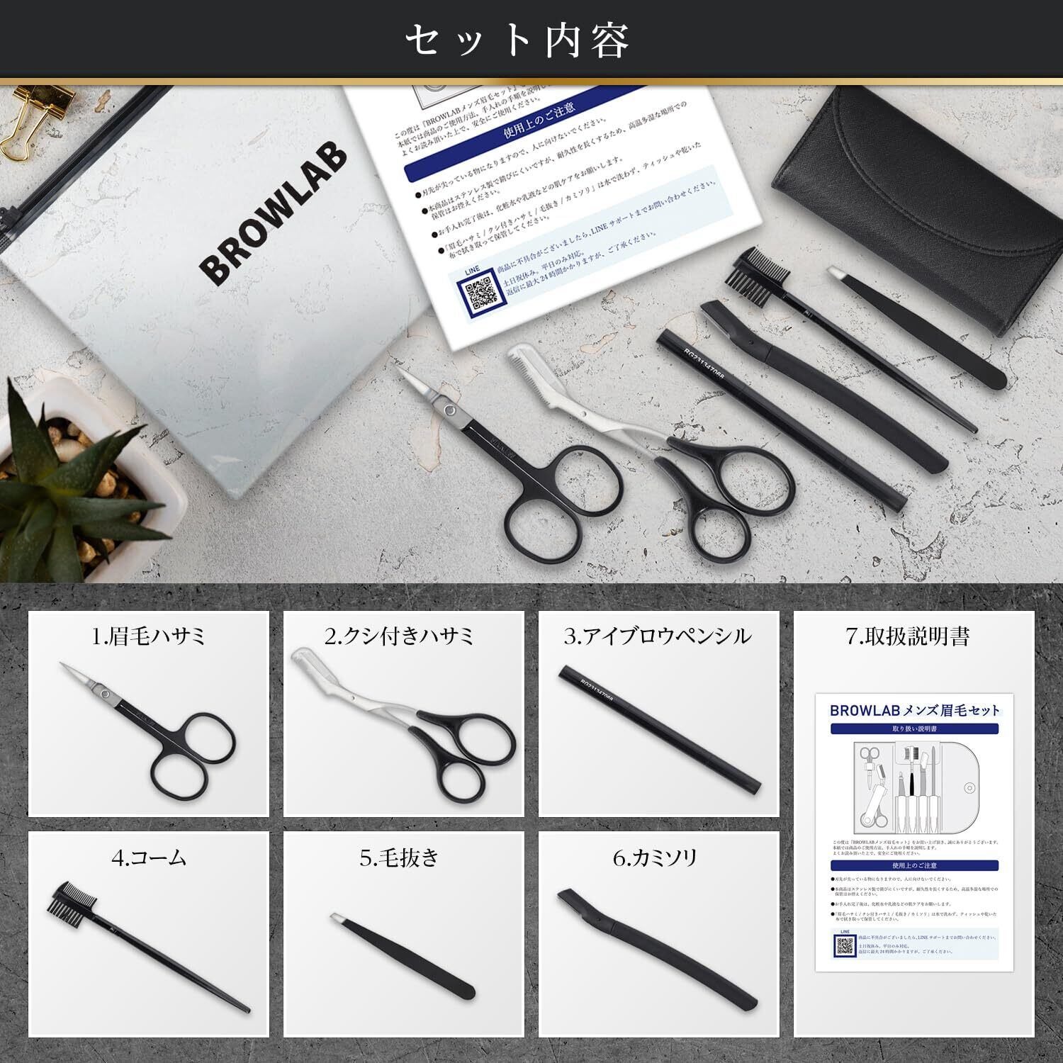 BROWLAB 眉毛 ハサミ はさみ メイクアップセット 眉毛剃り 毛抜き くし 顔剃り メンズ アイブロウペンシル