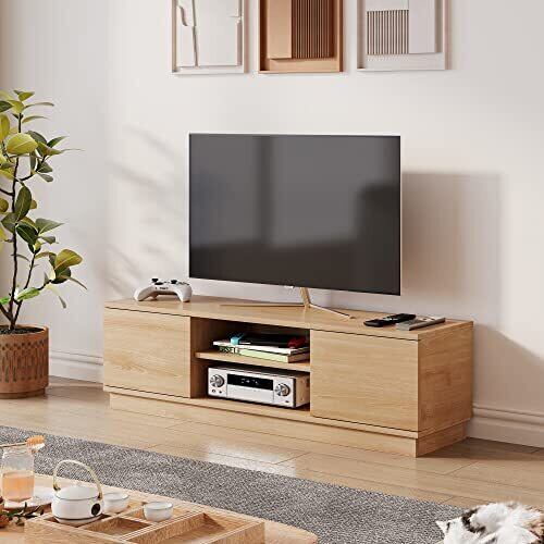 WLIVE テレビ台 ローボード テレビボード 収納 ロータイプ 幅110 高さ33cm tv台 tvボード 43インチ対応 24-47型対応 扉付き 大容量収納スペース ナチュラル | BASE SHOP