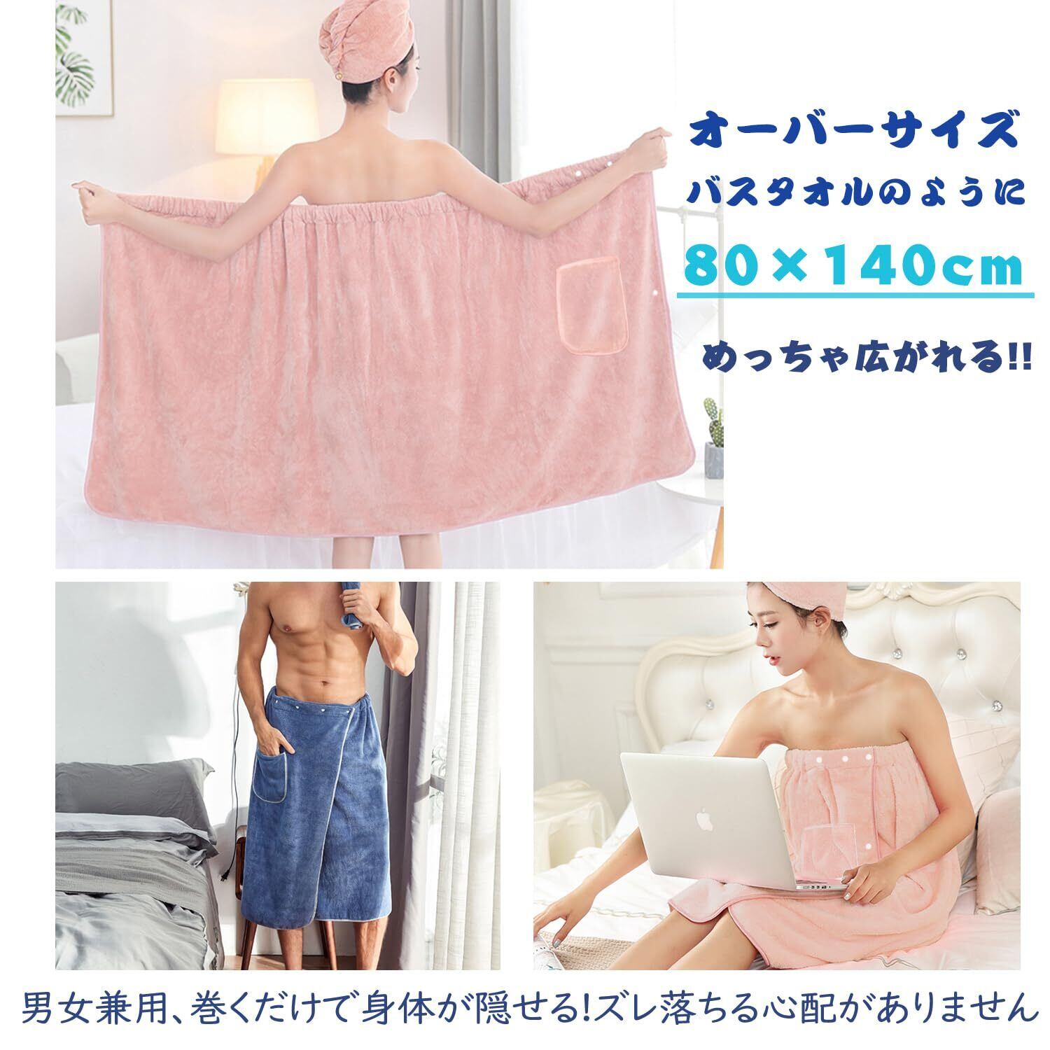 【多場面で活用】着脱簡単なスナップ付きラップタオルです。プール、スイミング、海水浴、お風呂上り、レジャーアウトドアシーンで活躍。学校のスポーツの授業、特にプールの際の着替えにも適します。