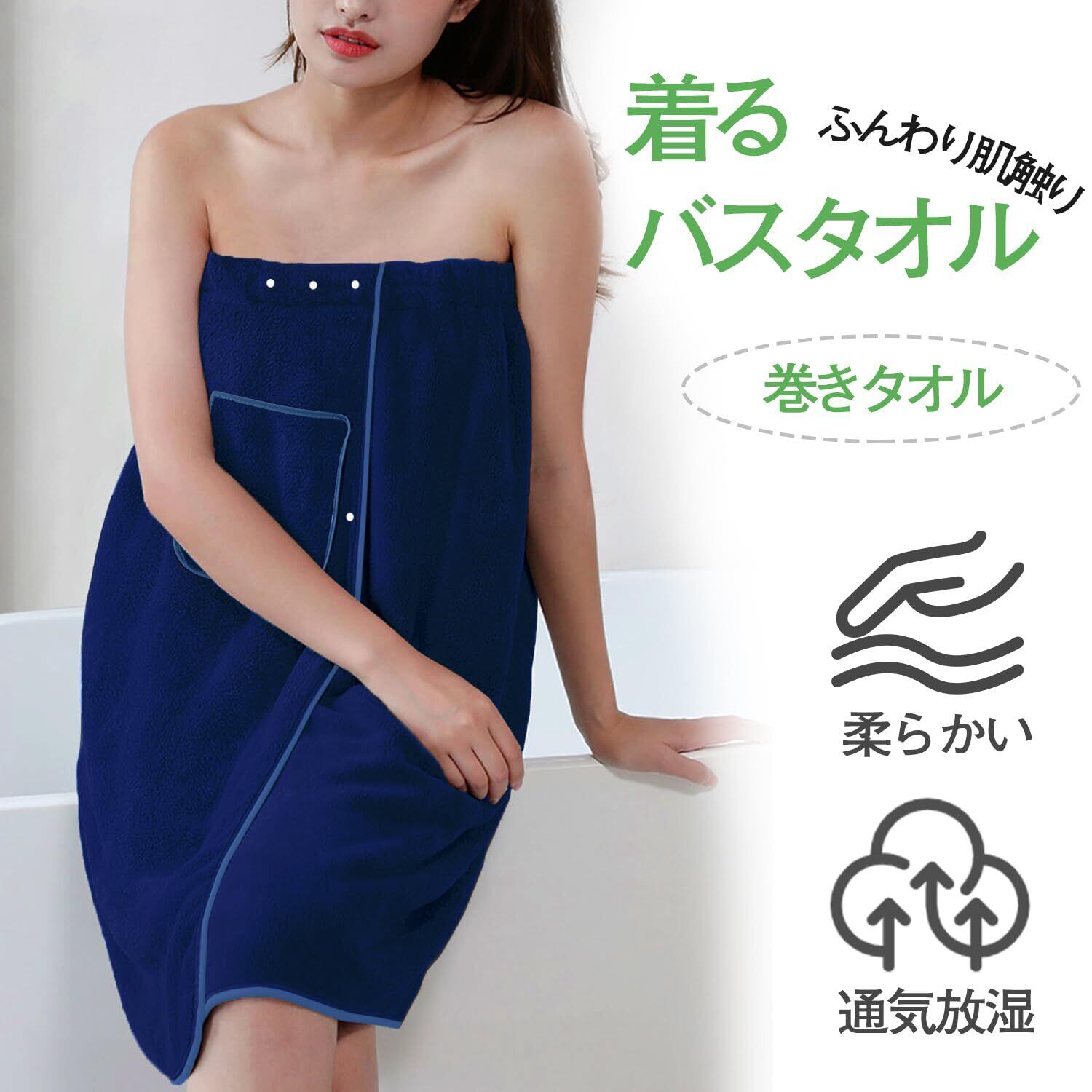 ラップタオル プールタオル 大判 約80X140cm 大人用 巻きタオル マイクロファイバー 柔らかい 吸水 速乾 男女兼用 水泳 ビーチタオル (ネイビー)
