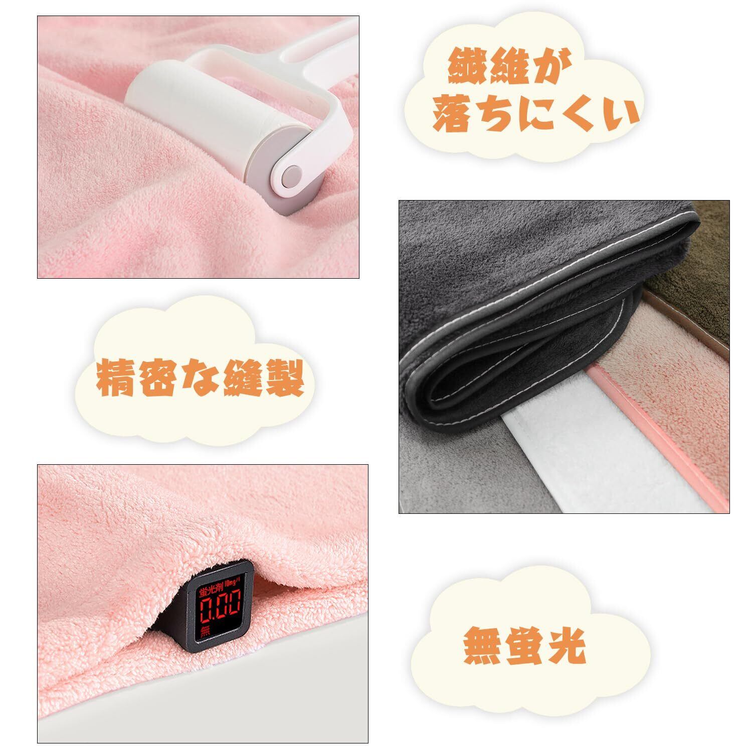 【優しい肌触り】やわらかくなめらかな肌触りのマイクロファイバー生地。肌への刺激が少なくと、敏感肌の方やアレルギーの子供でも使いやすいのが魅力です。吸水力が抜群で、体についた水分をしっかり吸収。濡れた身体が拭くときは、こすらず吸い取るように使うといいです。