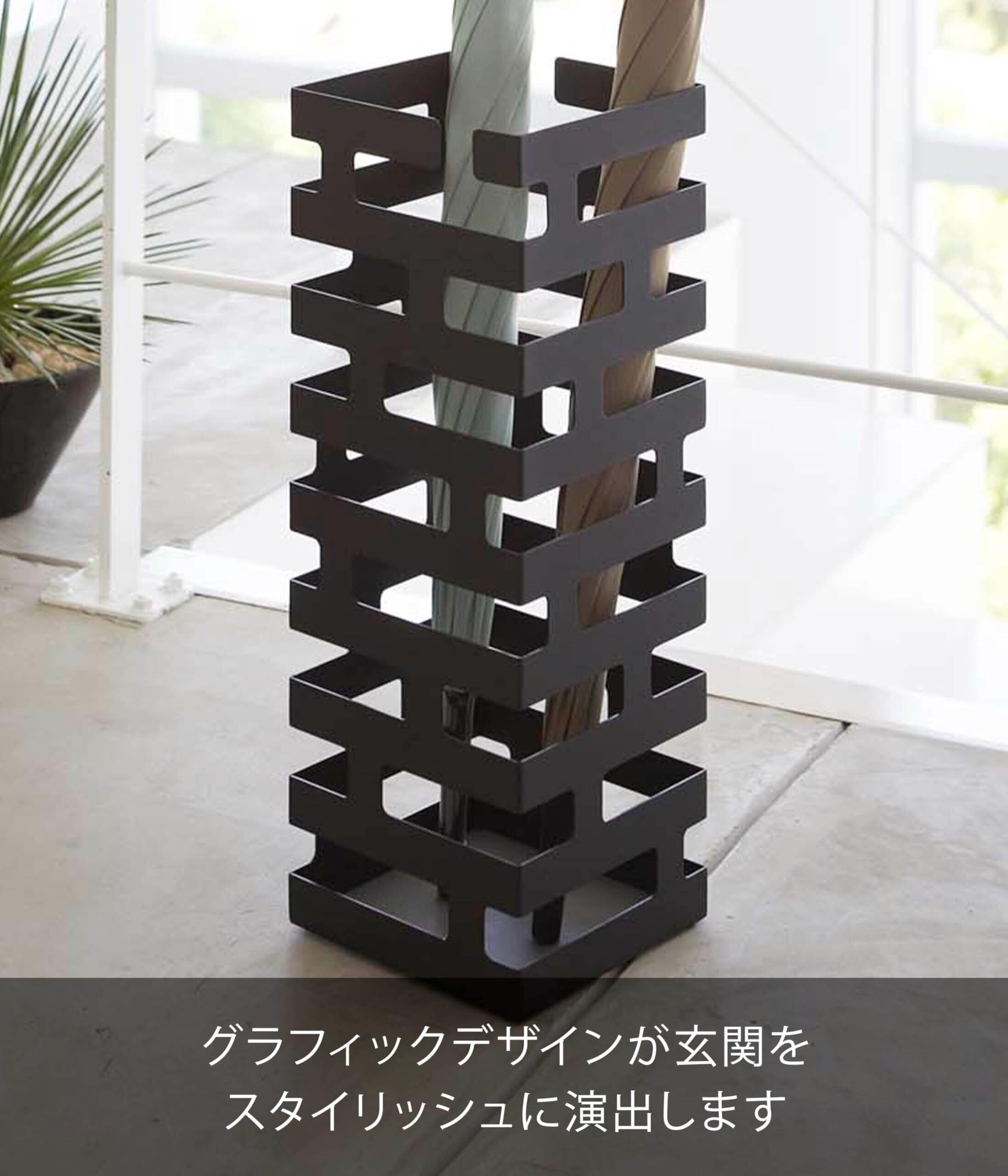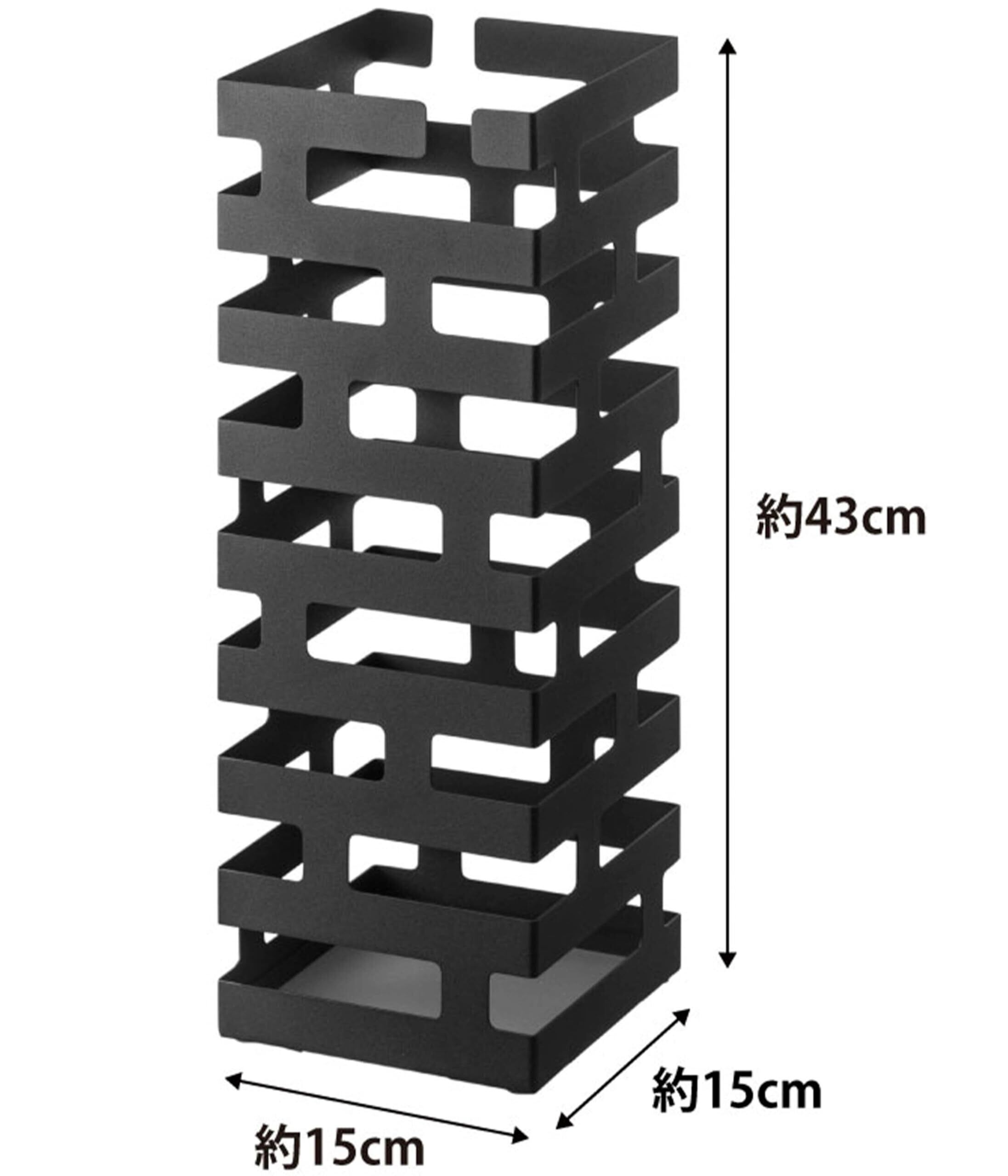 山崎実業(Yamazaki) かさたて ブリック ブラック 約W15×D15×H43cm 傘立て 折り畳み傘も収納可能 2363