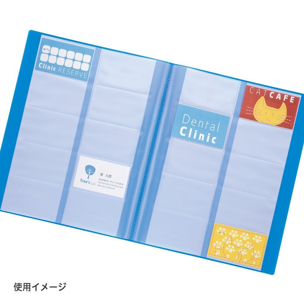 A4サイズで名刺を整理。見開きで20枚の名刺が見られる。