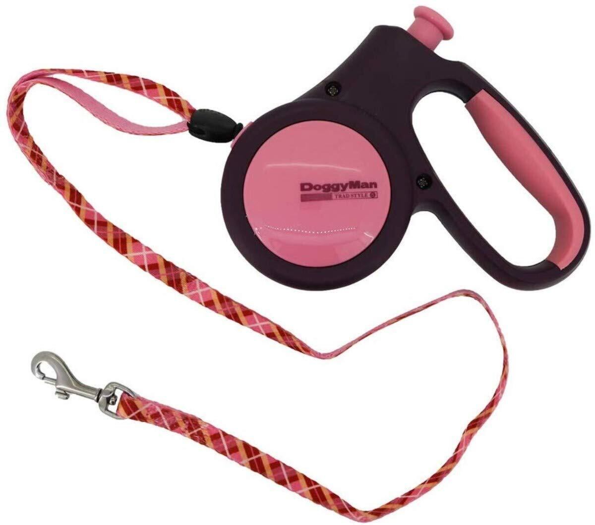 ・体重10kg以下の小型犬用・。丸ヒモ5mの伸縮リール式散歩用リード。・操作はボタン1つで、簡単!押してロック!押してフリーで使いやすい!・握りやすくすべりにくいハンドル部ラバーカバー。