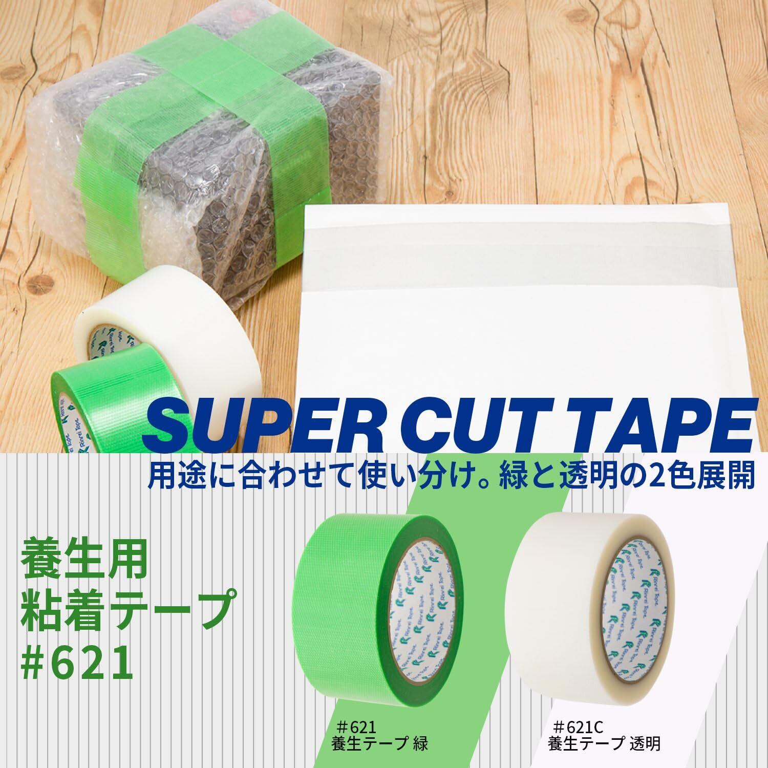養生材としてよく使用されるポリシート・プラスチック段ボール等テープが付きにくい素材をしっかり固定できる。