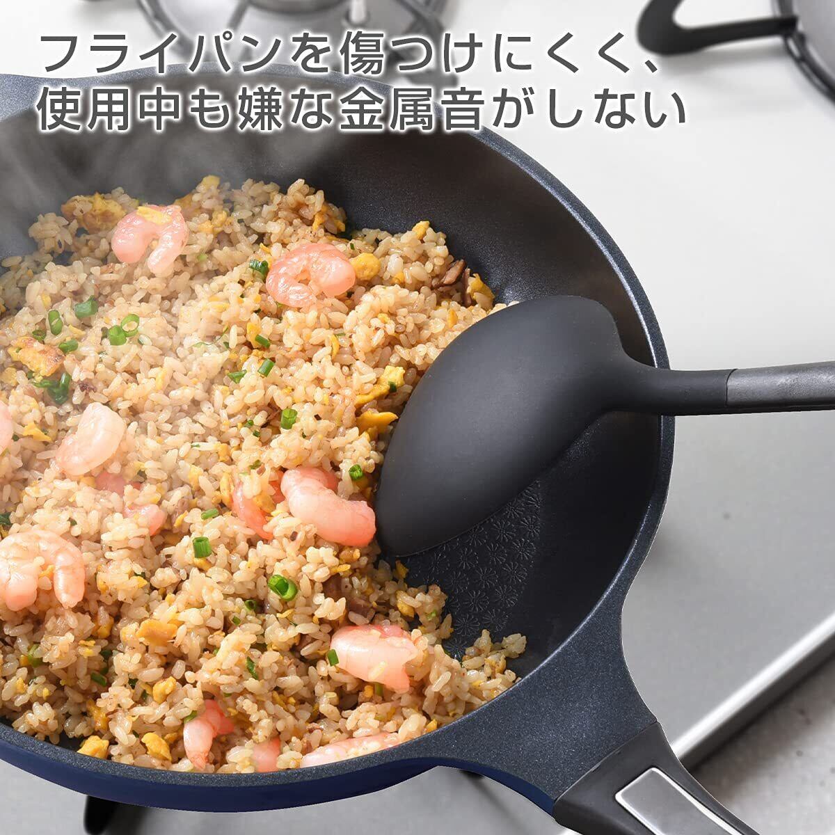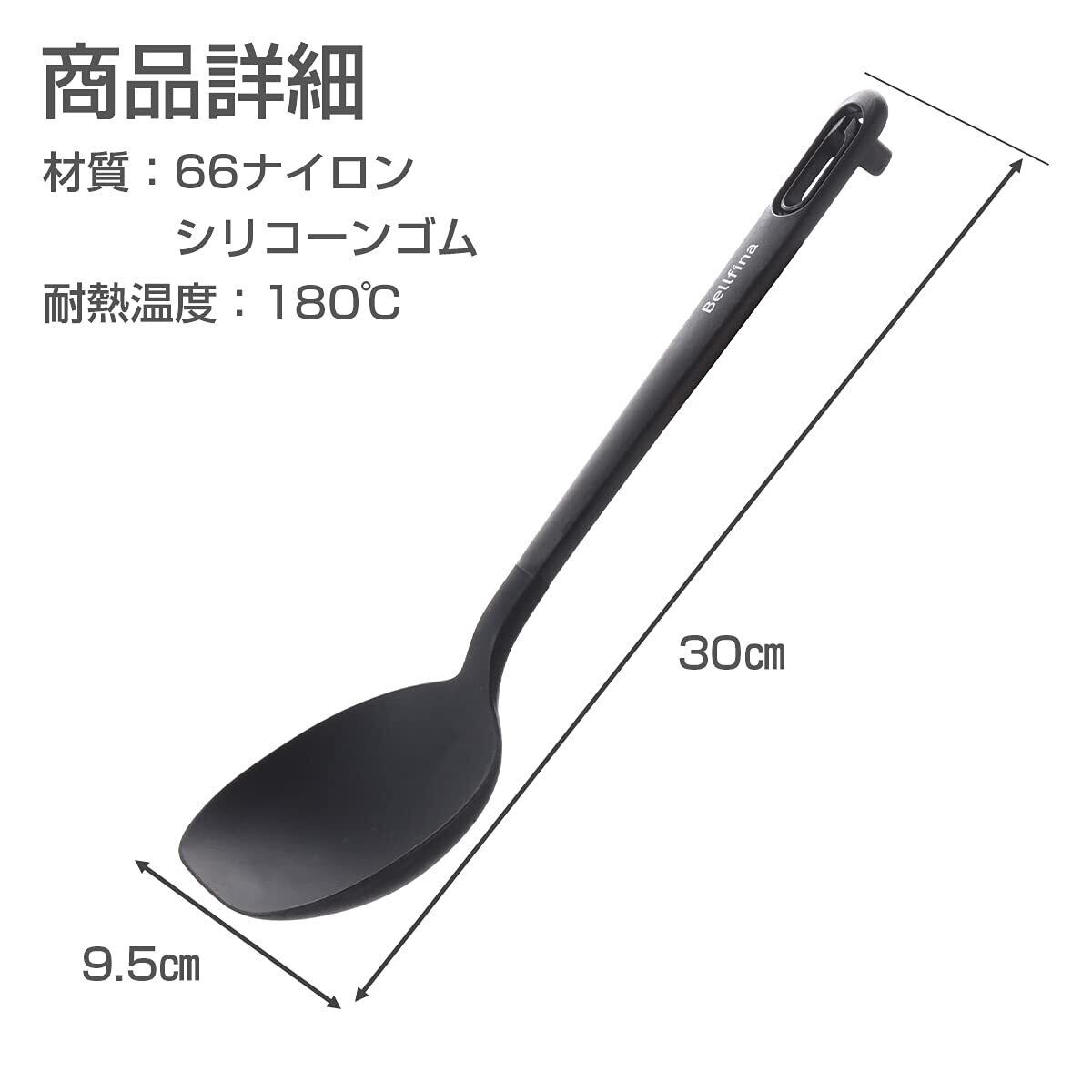 [アーネスト] シリコン調理スプーン 耐熱 たっぷりすくえる 30cm ベルフィーナ シリーズのフライパンに置ける 食洗機対応 へら スパチュラ おたま (集めやすい炒めスプーン) 大手飲食店愛用ブランド ブラック A-77436 | BASE SHOP