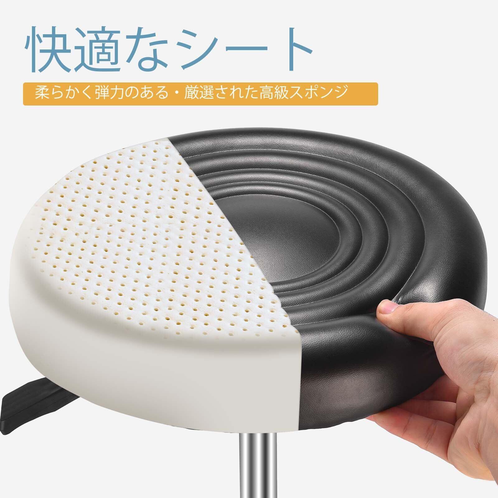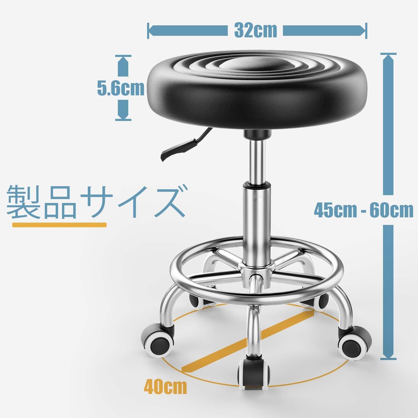 カットチェア高さ調節可能 キャスター付き丸椅子 丸キャスター昇降スツール PUレザー 耐荷重200kgフットサポート付き 昇降椅子 椅子 キャスター付きランキング360度回転可能、ビューティーサロン、ヘアサロン、キッチンに適しています (ブラック) | BASE SHOP