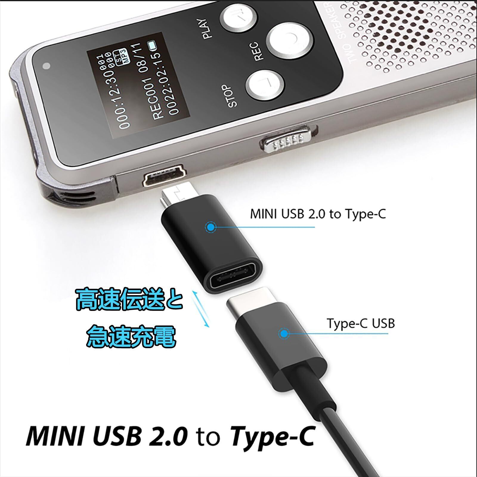 Type-C to ミニUSB アダプター 2個パック Type-C (メス) Mini USB (オス)アダプター 充電とデータ転送 MP3/MP4 デジカメ ドライブレコーダーなど 変換アダプター