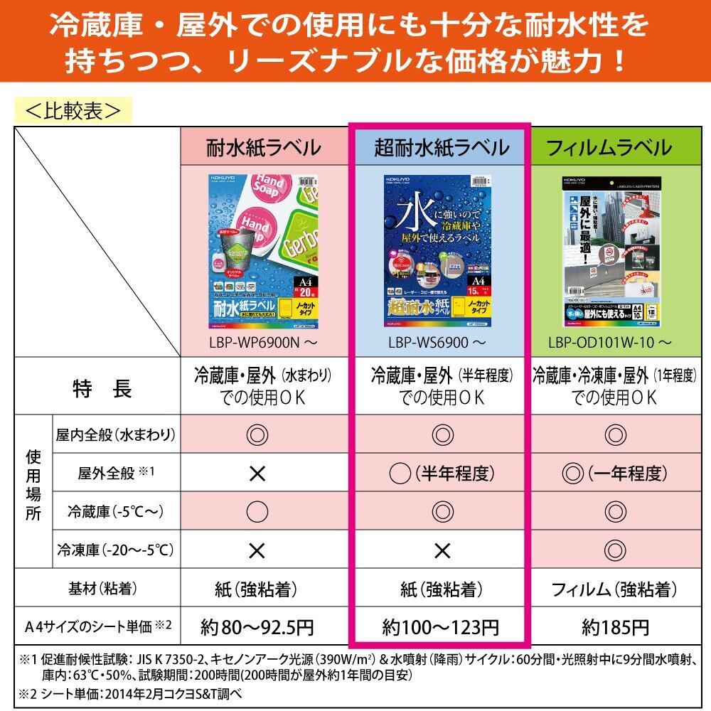 コクヨ(KOKUYO) ラベルシール カラーレーザー カラーコピー 超耐水 ラベル LBP-WS6900