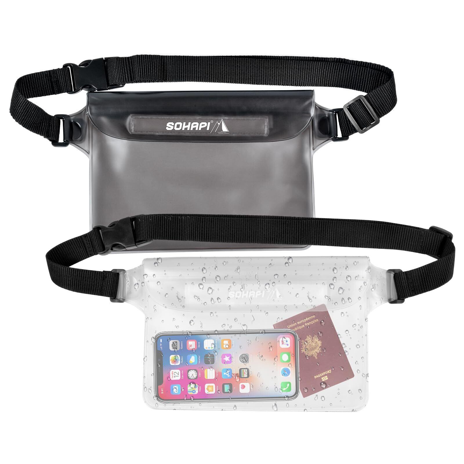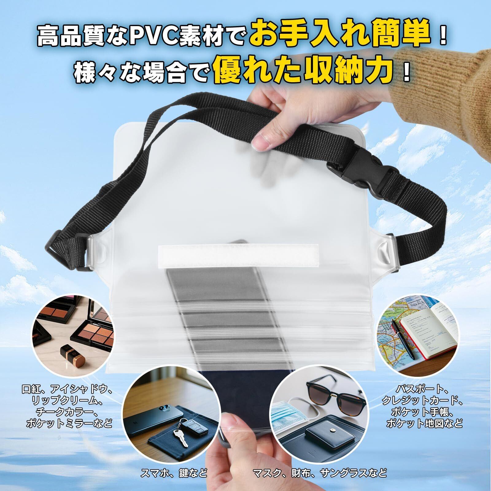 LINECY 防水ポーチ 完全防水 IPX8 2個セット 防水ケース 財布 サングラス 小物入れ プール 海 キャンプ 水遊び お釣り 防水袋 PVC 2色(ブラック・ホワイト) | BASE SHOP