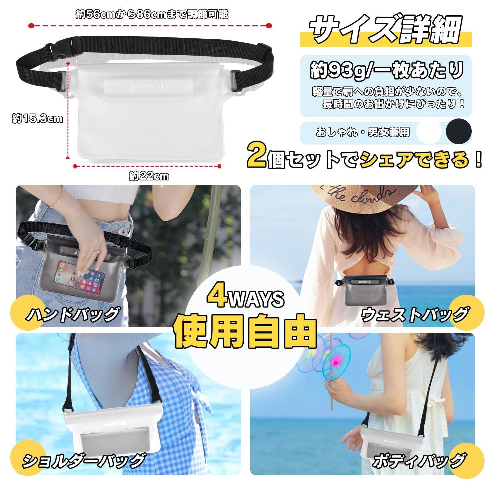 LINECY 防水ポーチ 完全防水 IPX8 2個セット 防水ケース 財布 サングラス 小物入れ プール 海 キャンプ 水遊び お釣り 防水袋 PVC 2色(ブラック・ホワイト)