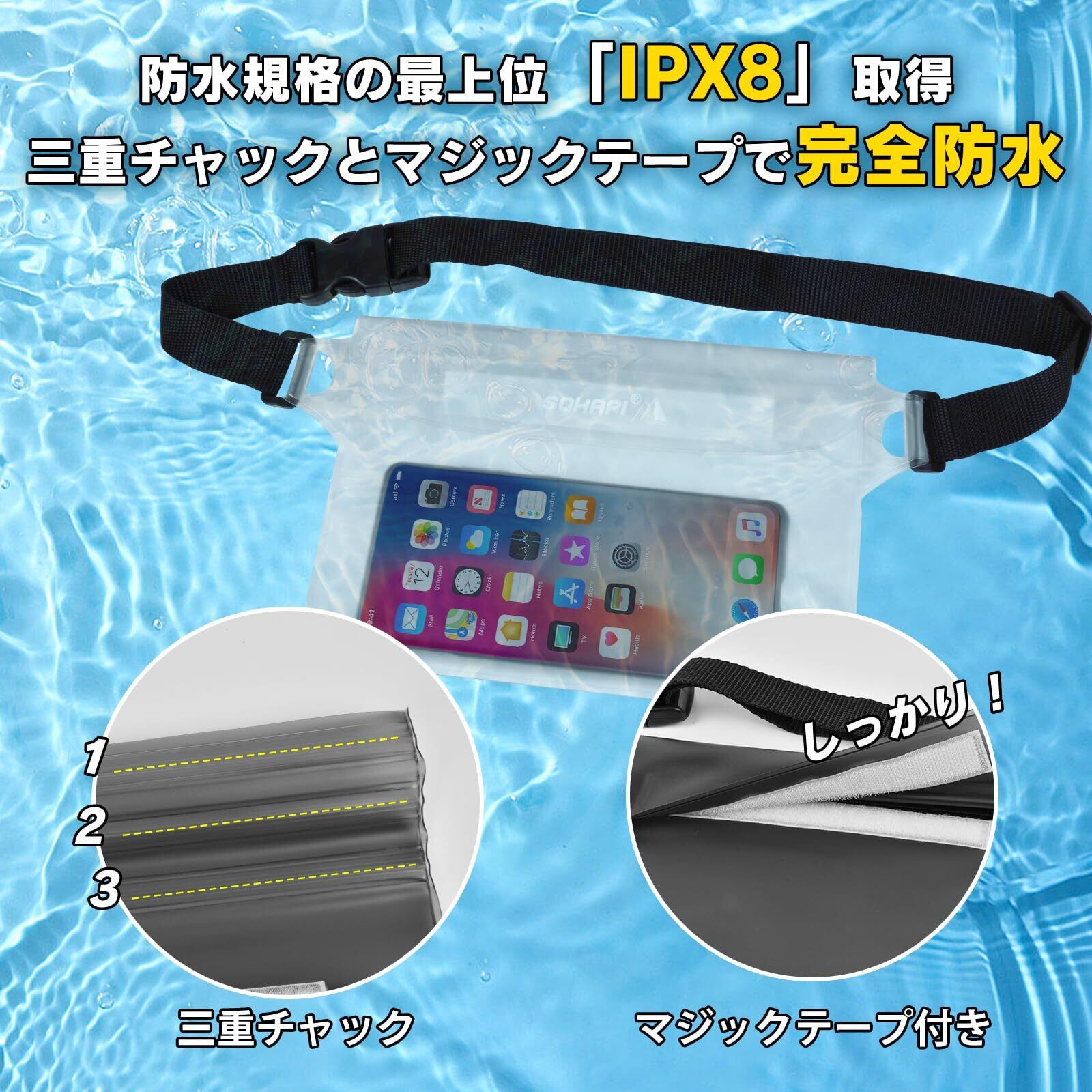 【優れた完全防水性能】LINECY防水ポーチは高品質のPVC素材を採用し、IPX8の高規格を持ち、耐久性と防水性を兼ね備えます。開き口は3重防水チャックになっており、マジックテープが付いているため、スマホ・財布・鍵・腕時計・タバコや他の貴重品を水濡れからよく守ります!