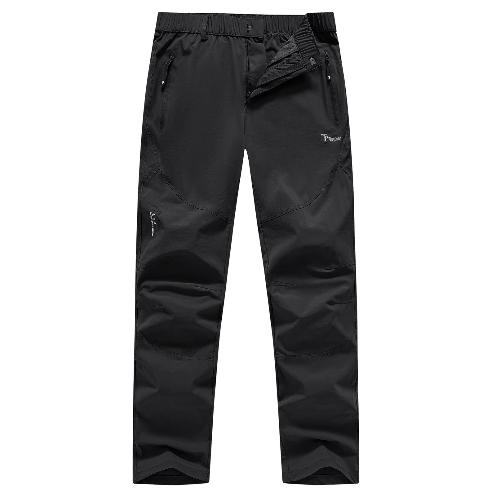 レディース トレッキングパンツ:フロントにはジッパーフライを採用して、脱着がやすい。さらにウエスト部分をゴム仕様を施しているので、お腹周りまで伸縮しウエストフリーデザインとなっています。