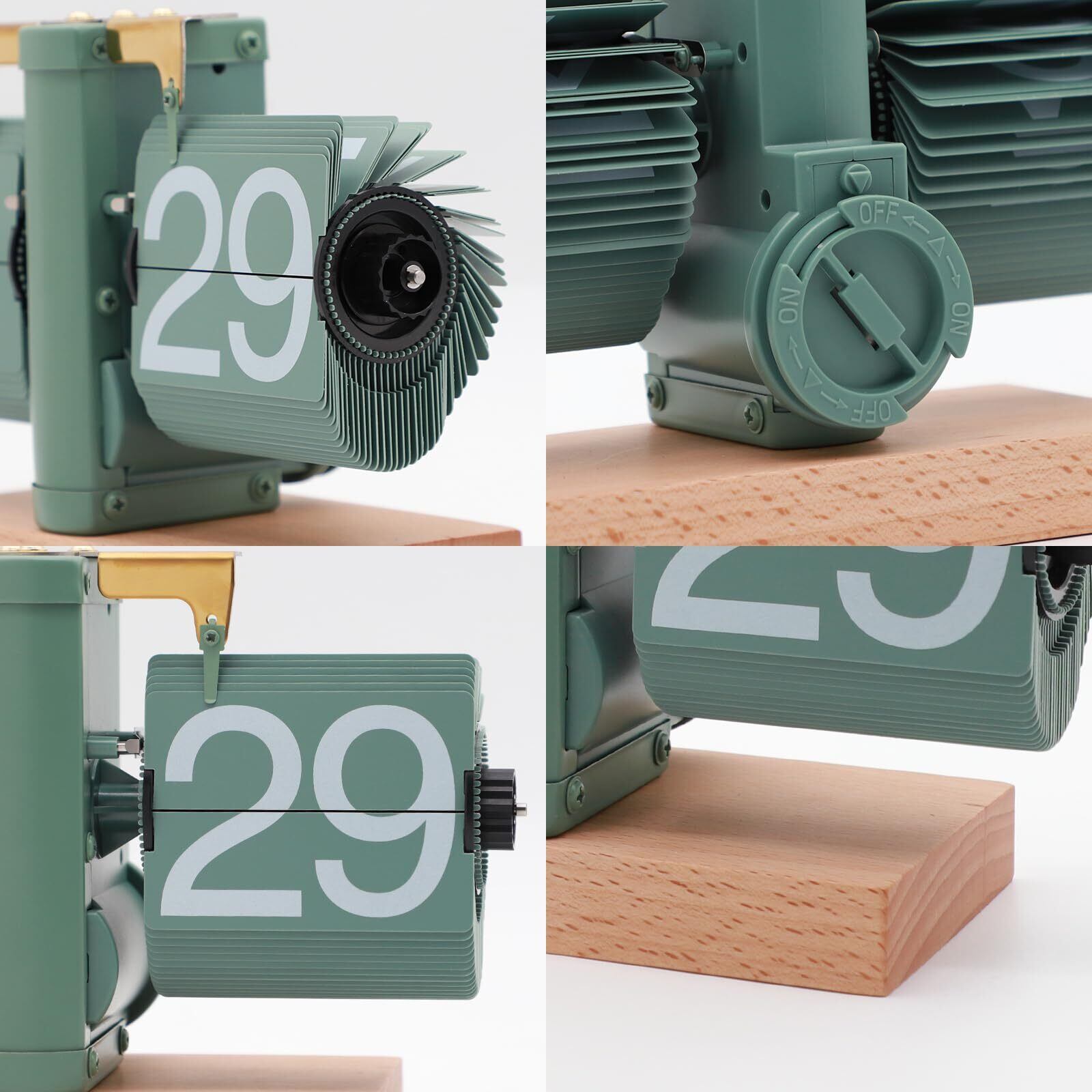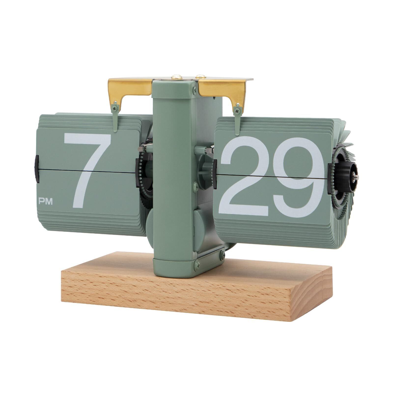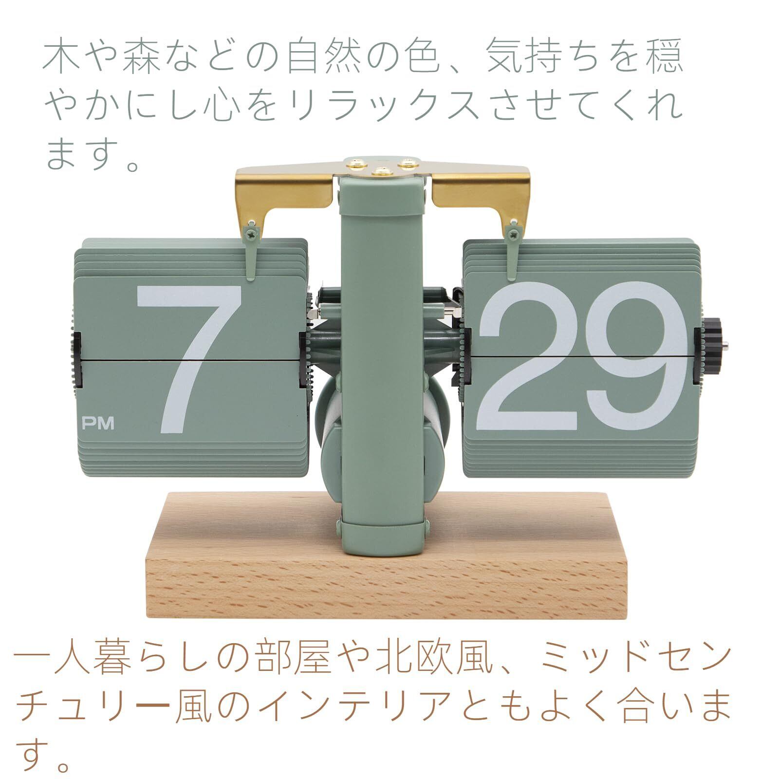 フリップクロック パタパタ時計木製 置き時計 木製 レトロ 置き時計 おしゃれ 贈り物 インテリア フリップ時計 デスク 彼氏友達贈り物 (緑)