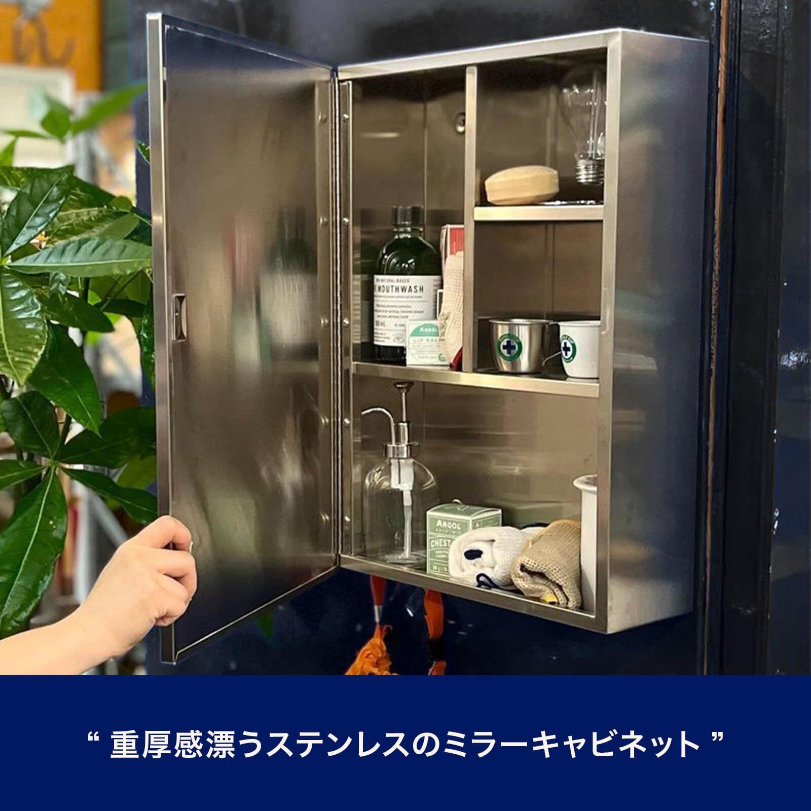 ダルトン(Dulton) ステンレス スチール キャビネット ステンレス素材がクールなミラーキャビネット 洗面鏡 収納棚 高さ500mm 幅355mm 奥行130mm D19-0058 | BASE SHOP