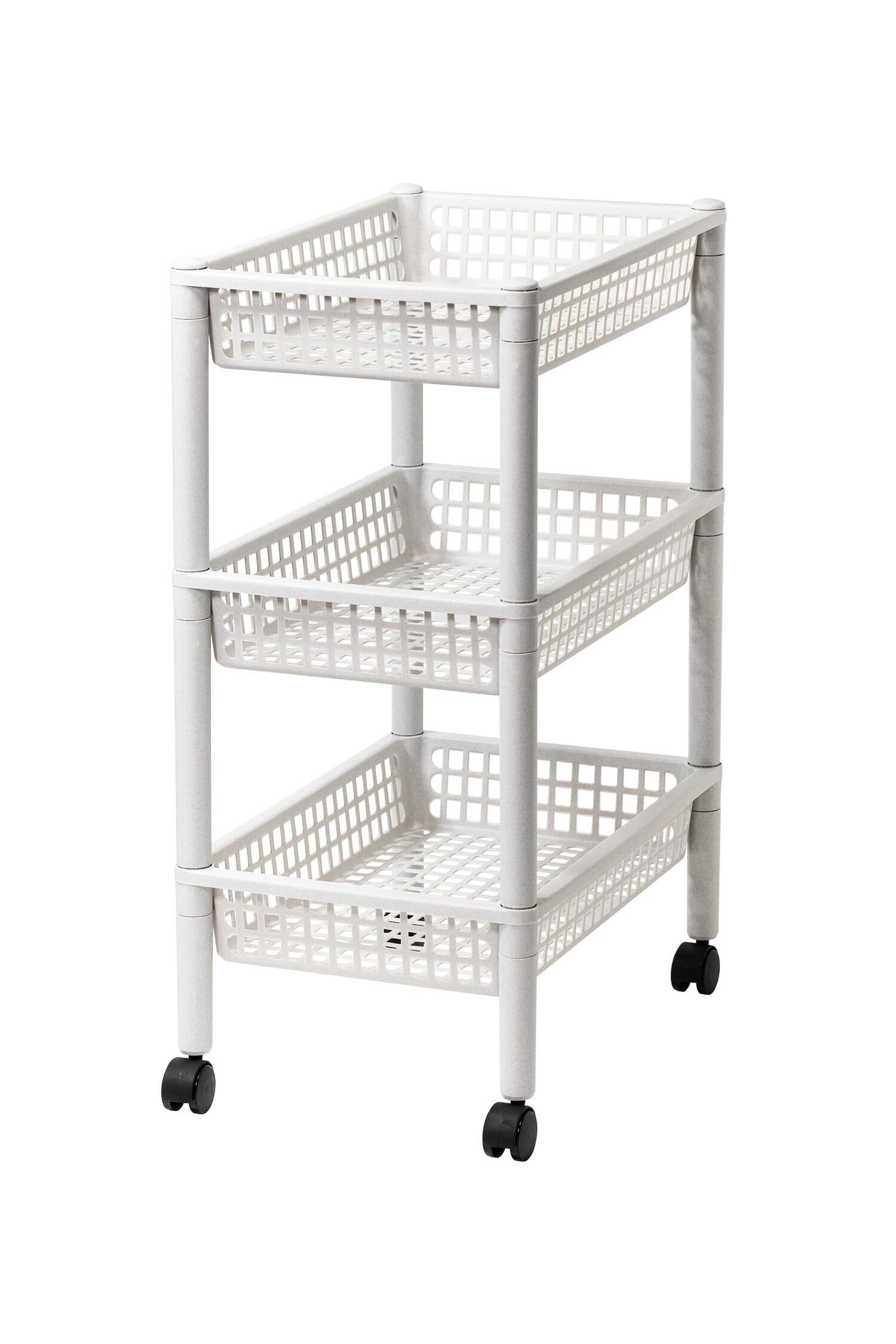 浅型バスケット3段タイプのワゴン。 浅型のバスケットなので小物も見やすくスッキリ収納。 キッチンで小物の収納や食品のストック、サニタリーでの小物収納など多目的に使える収納ワゴン。 掃除の際などに簡単に移動できるキャスター付き。 Amazonより ●デスクまわり、キッチン、バスルーム、ランドリーなどにぴったり、お部屋のスペースを上手に有効活用! ●バスケットの棚は小さな物も落ちにくいので動かすのも安心。容量もたっぷり! ●前後左右から取り出しできるから、横置き・縦置き、場所で変えられてとっても便利! ●キャスター付きで移動が楽ちん!