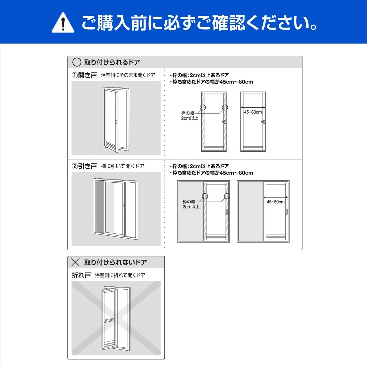 ※場所によっては、油分やシャンプーなどが付着している場合があります。台所用中性洗剤を薄めたぬるま湯でよく拭きとり、よく乾かしてからお取り付けください。