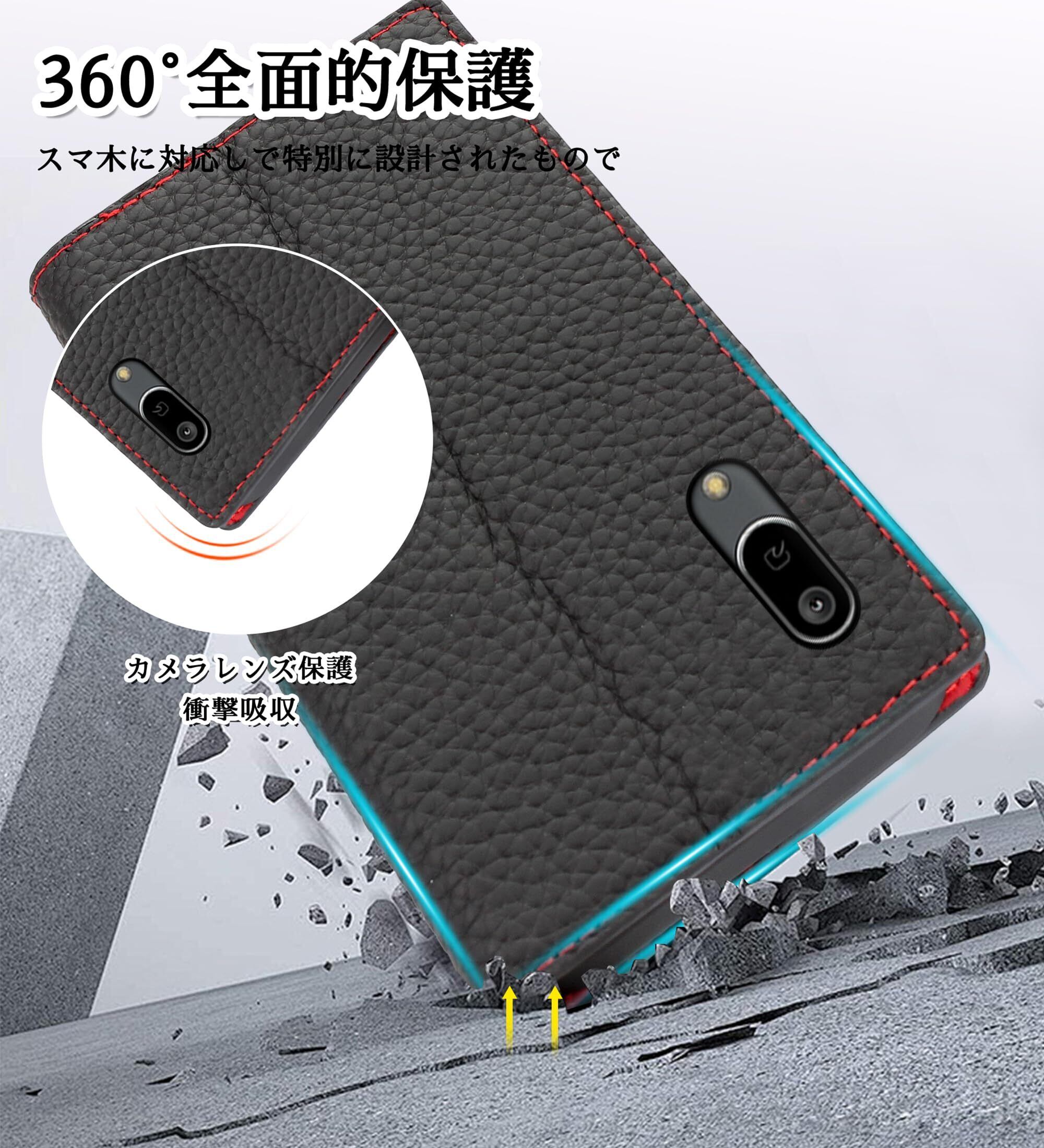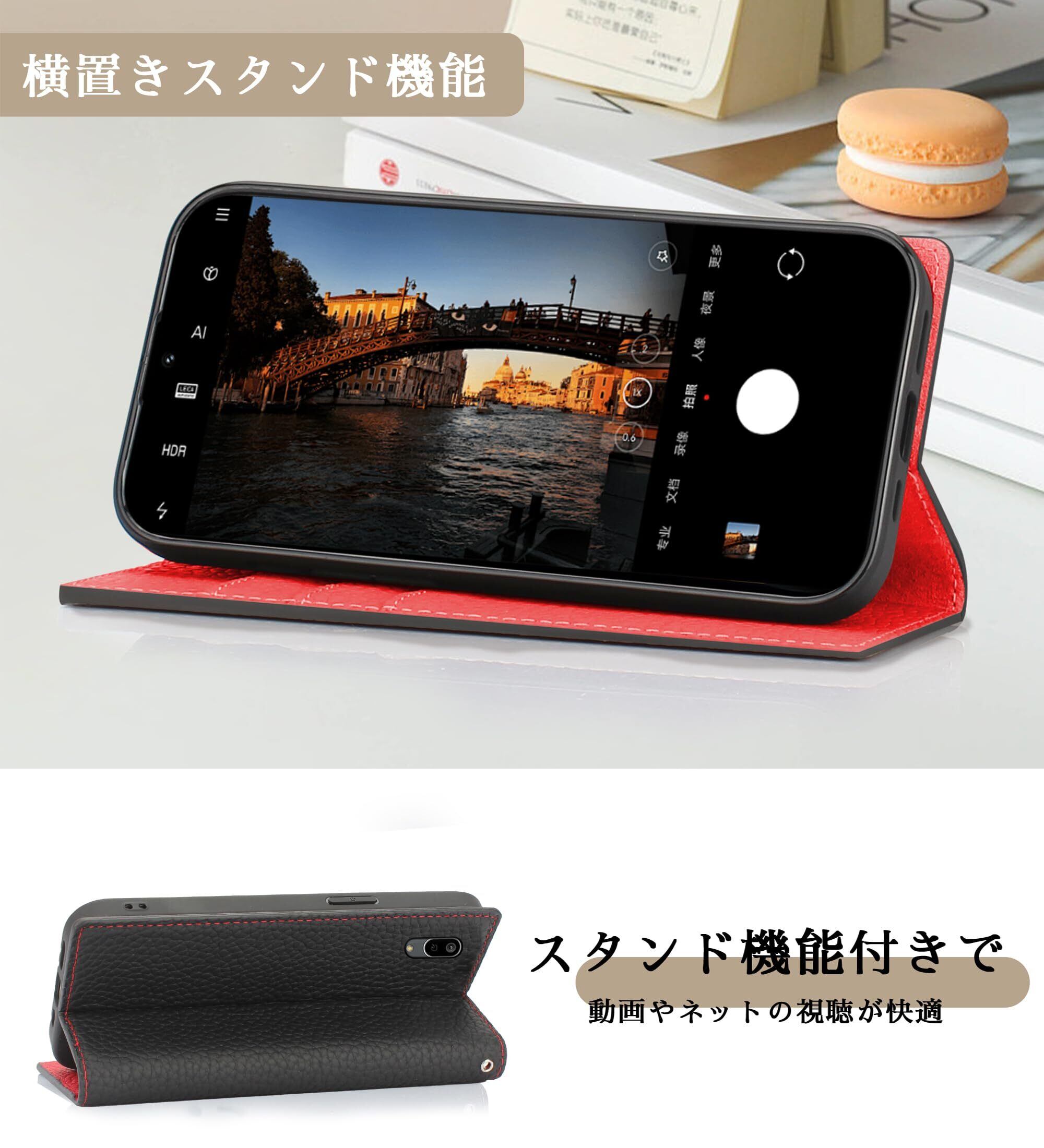 Clicsun AQUOS sense3 ケース 高級牛本革ケース 手帳型 sense3 lite SH-02M SHV45 sense3 basic用 Android One S7 兼用 アクオス センス3/アンドロイドワン S7 カバー 本革 レザー カバー スタンド機能 ストラップ付き マグネット式 カードポケット ギフトボックス付き ブラック×レッド | BASE SHOP