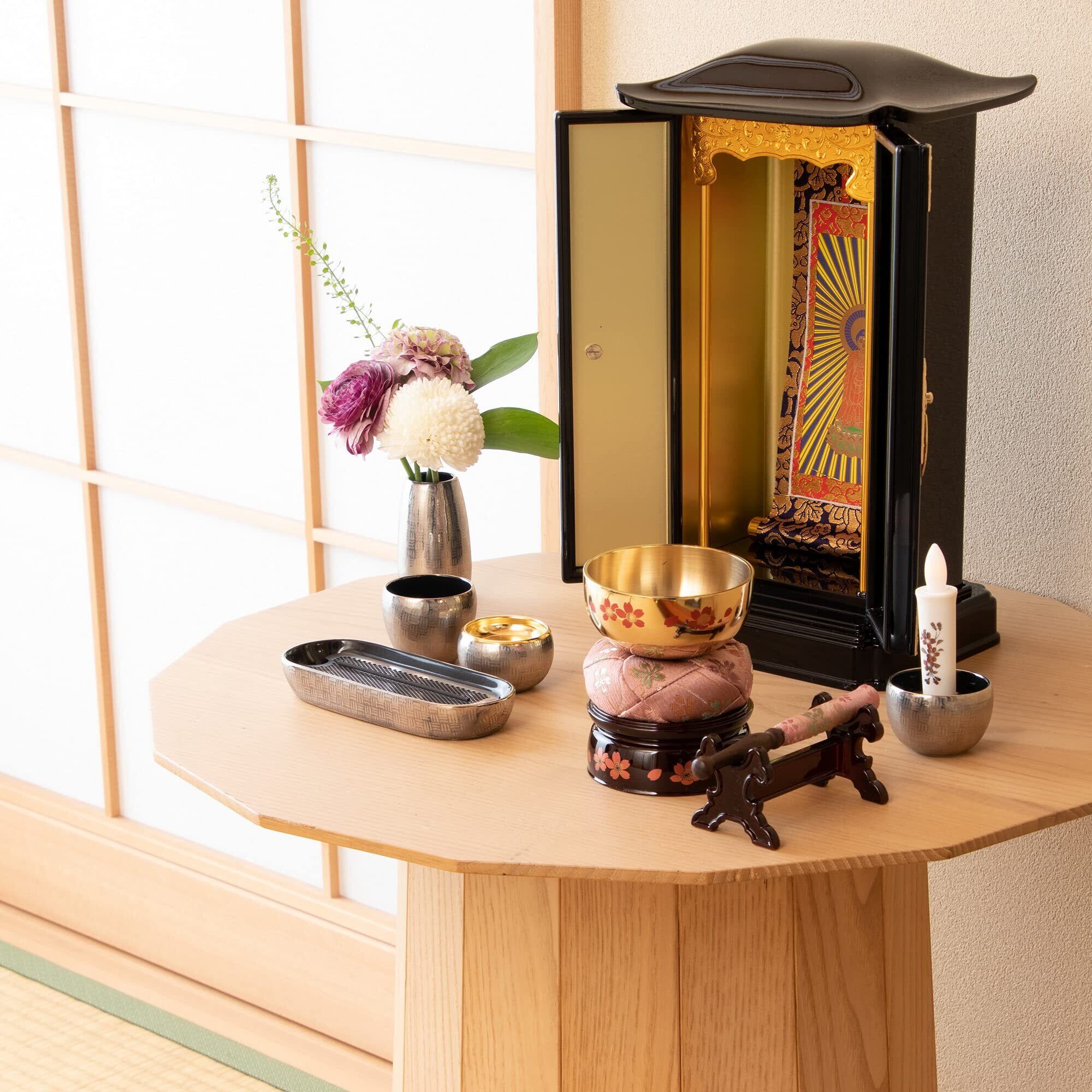 仏間のない家でも、リビングやマンション暮らしの方も、さりげなく置くことができます。仏壇用品を揃え始めた方にもちょうどいい、日本製のおりんセットです。