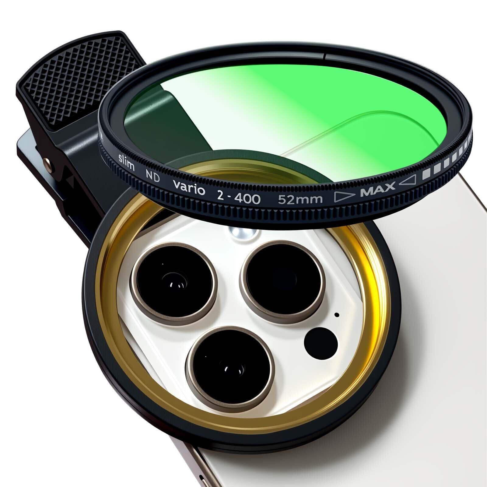 52mm クリップオン ND 2-400 電話カメラフィルター iPhone 16 15 14 13 12 11、Samsung BLU、Motorola、Xiaomi、その他のスマートフォン用 | BASE SHOP