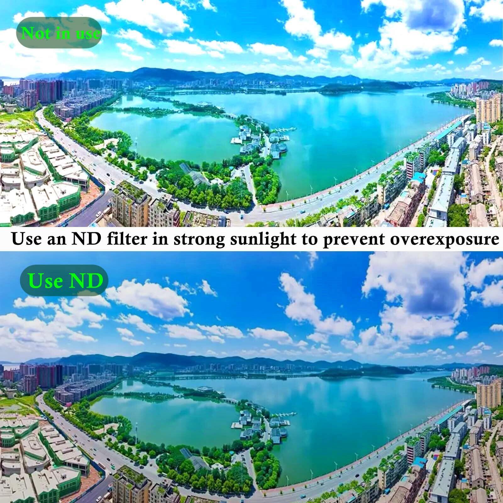本製品は調節式NDフィルターND2-ND400です。 望ましい効果を得るには、NDフィルターを回転させて光を減らす必要があります。