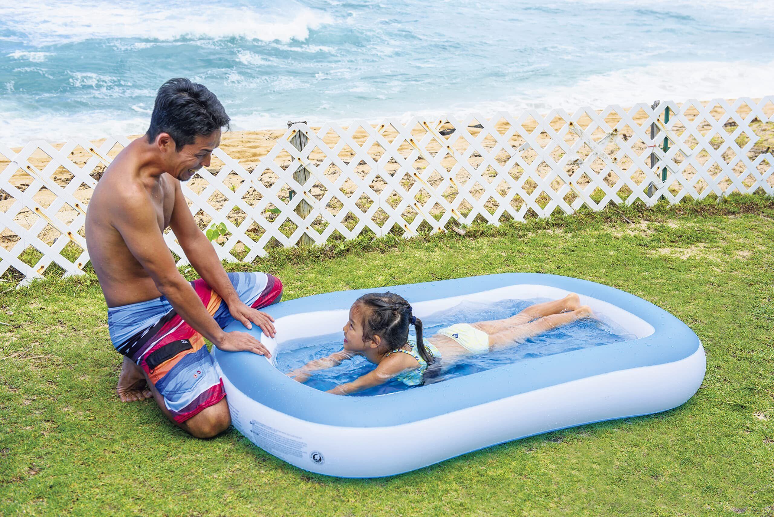 膨らんだ状態のプールの大きさは長さ約163cm、横幅約104cm、高さ25cmです。