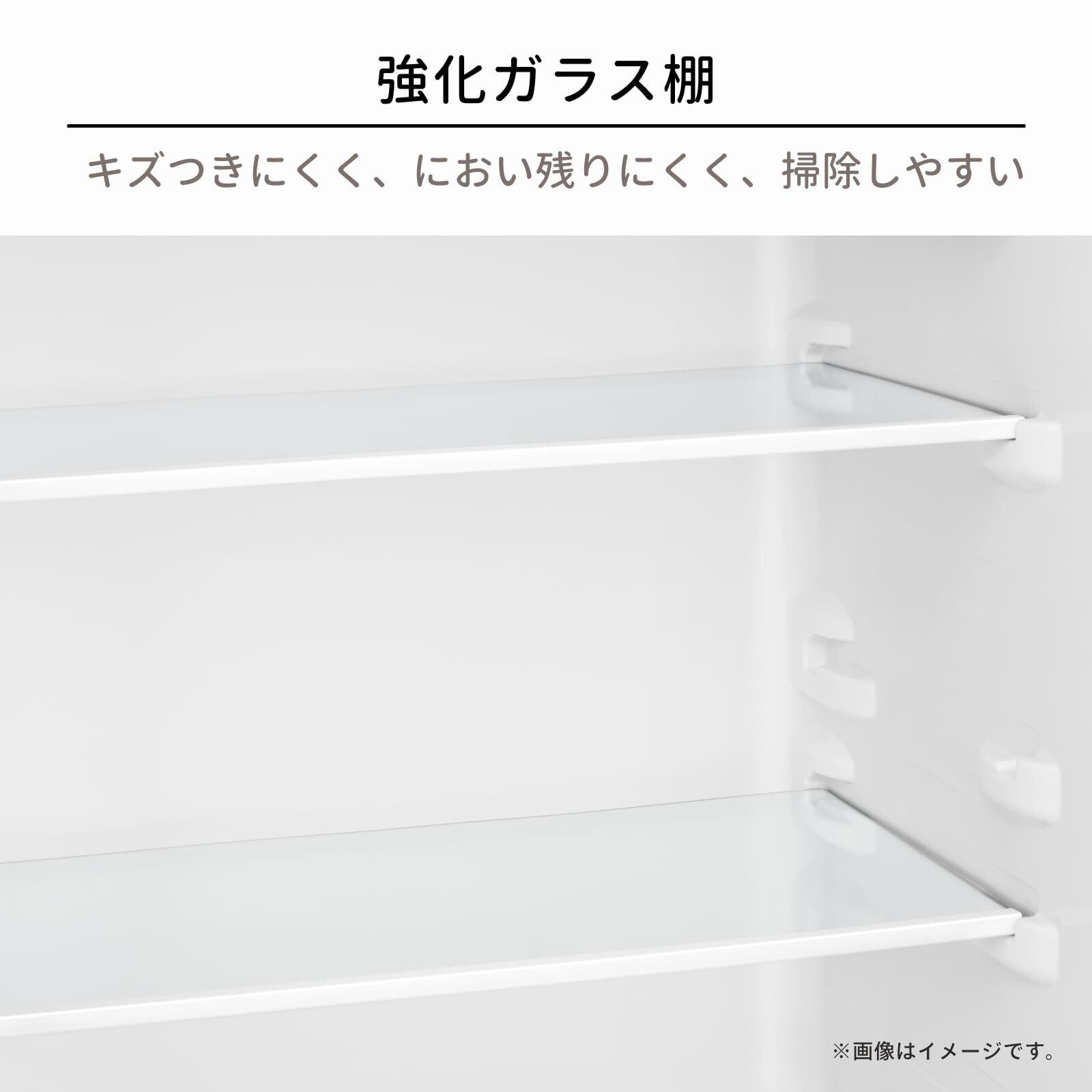 【強化ガラス棚】たくさん詰め込んでもゆがまない、キズに強くお掃除もしやすいので、いつも清潔に保ちます。