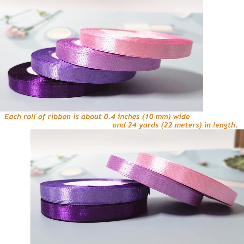 Morices 4巻 22m ファブリックリボン サテンリボン、10mm シングルフェイス リボンロール クラフトリボン 飾りリボン 為に 花束 ギフト包装 結婚式 パーティーの装飾 ヘアボウ作り DIY 手芸用品 (パープルシリーズ)