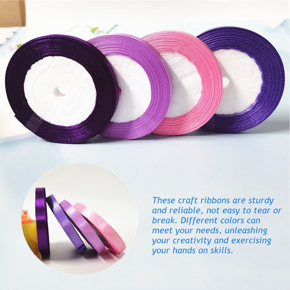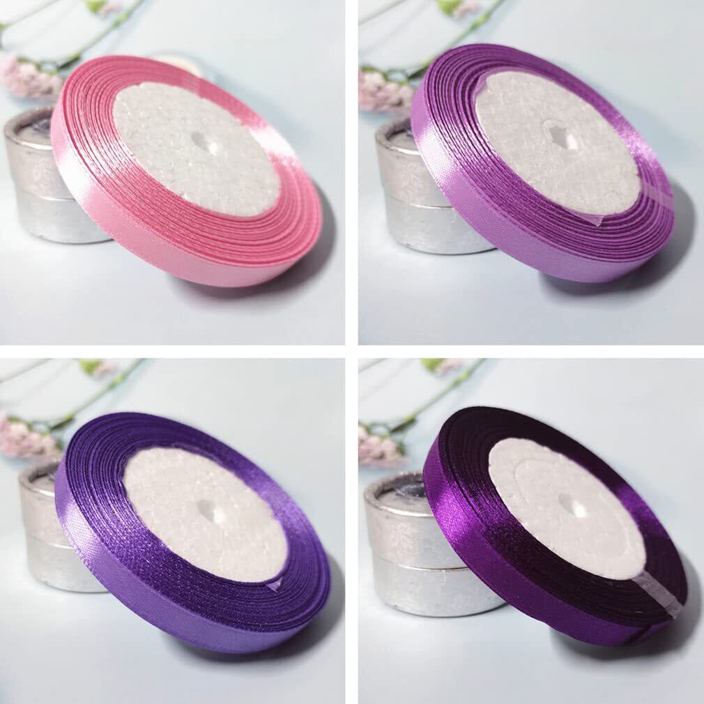 Morices 4巻 22m ファブリックリボン サテンリボン、10mm シングルフェイス リボンロール クラフトリボン 飾りリボン 為に 花束 ギフト包装 結婚式 パーティーの装飾 ヘアボウ作り DIY 手芸用品 (パープルシリーズ) | BASE SHOP
