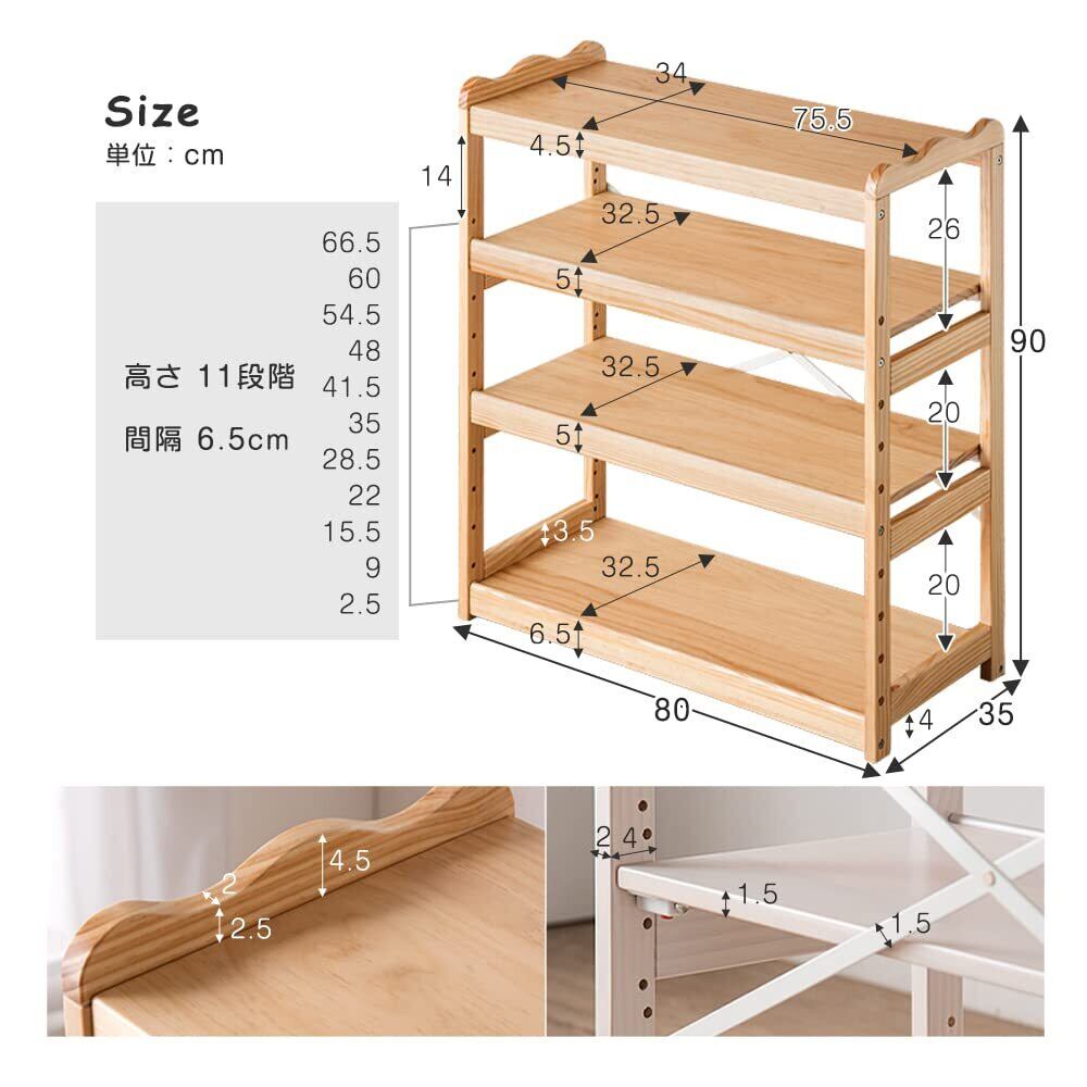 タンスのゲン ラック 棚 幅80 4段 キッズラック 天然木 収納 おかたづけ ナチュラル 65200005 01 【72010】