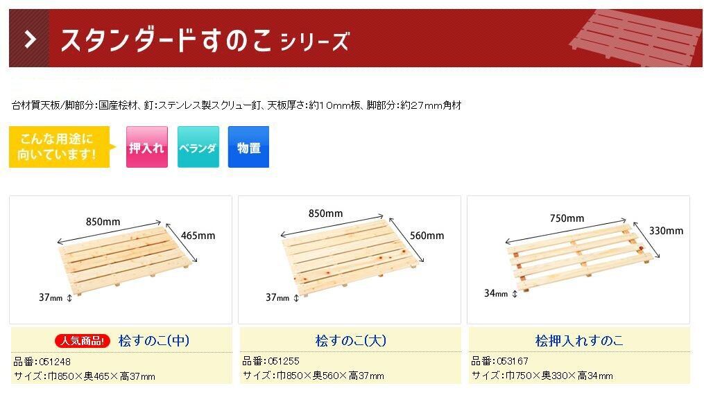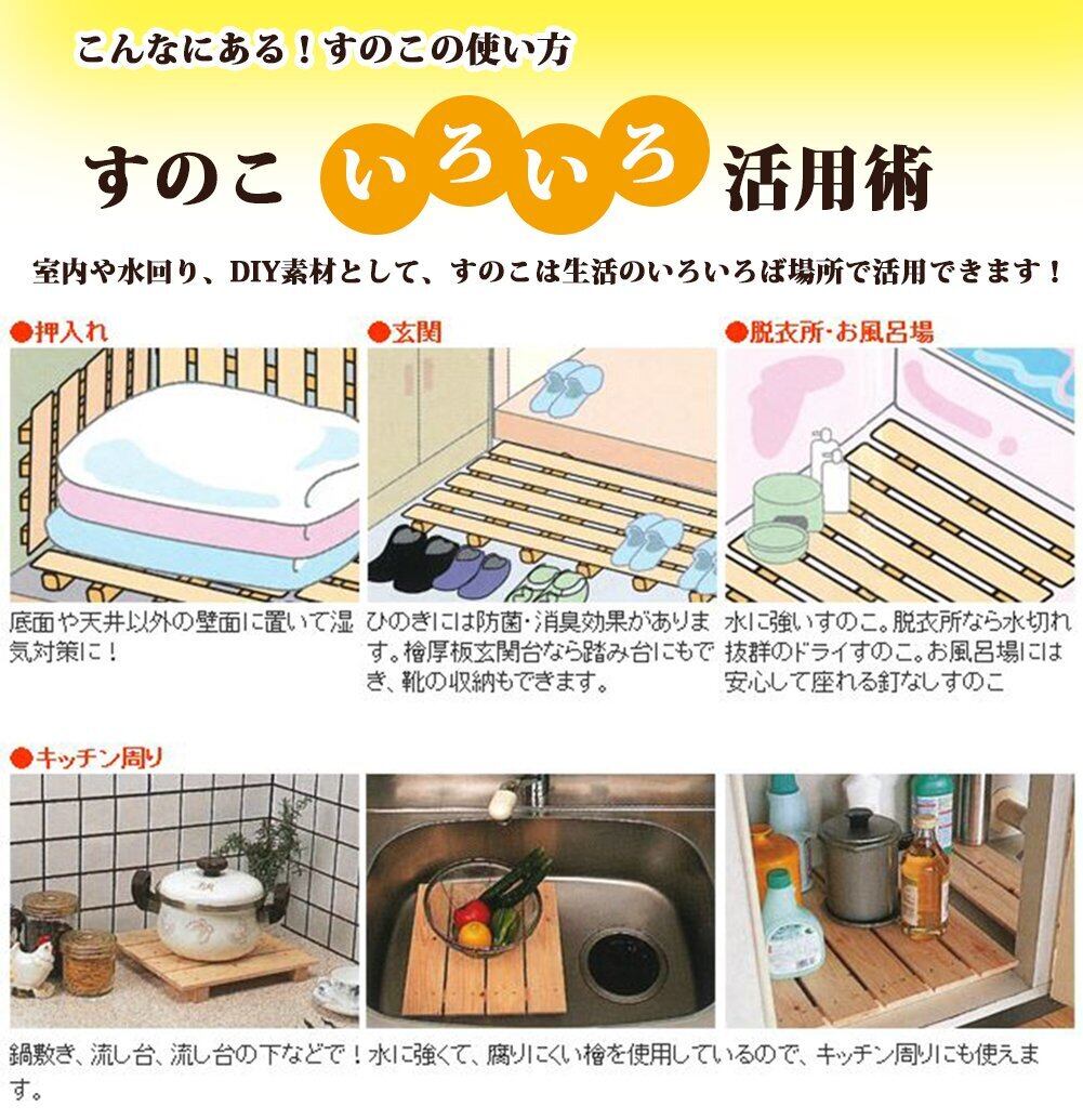 ●香りが良く、調湿性・抗菌性に優れた国産桧のスノコは、お風呂や押入れ、納戸、物置、ベランダ、玄関など様々な場所で大活躍!
