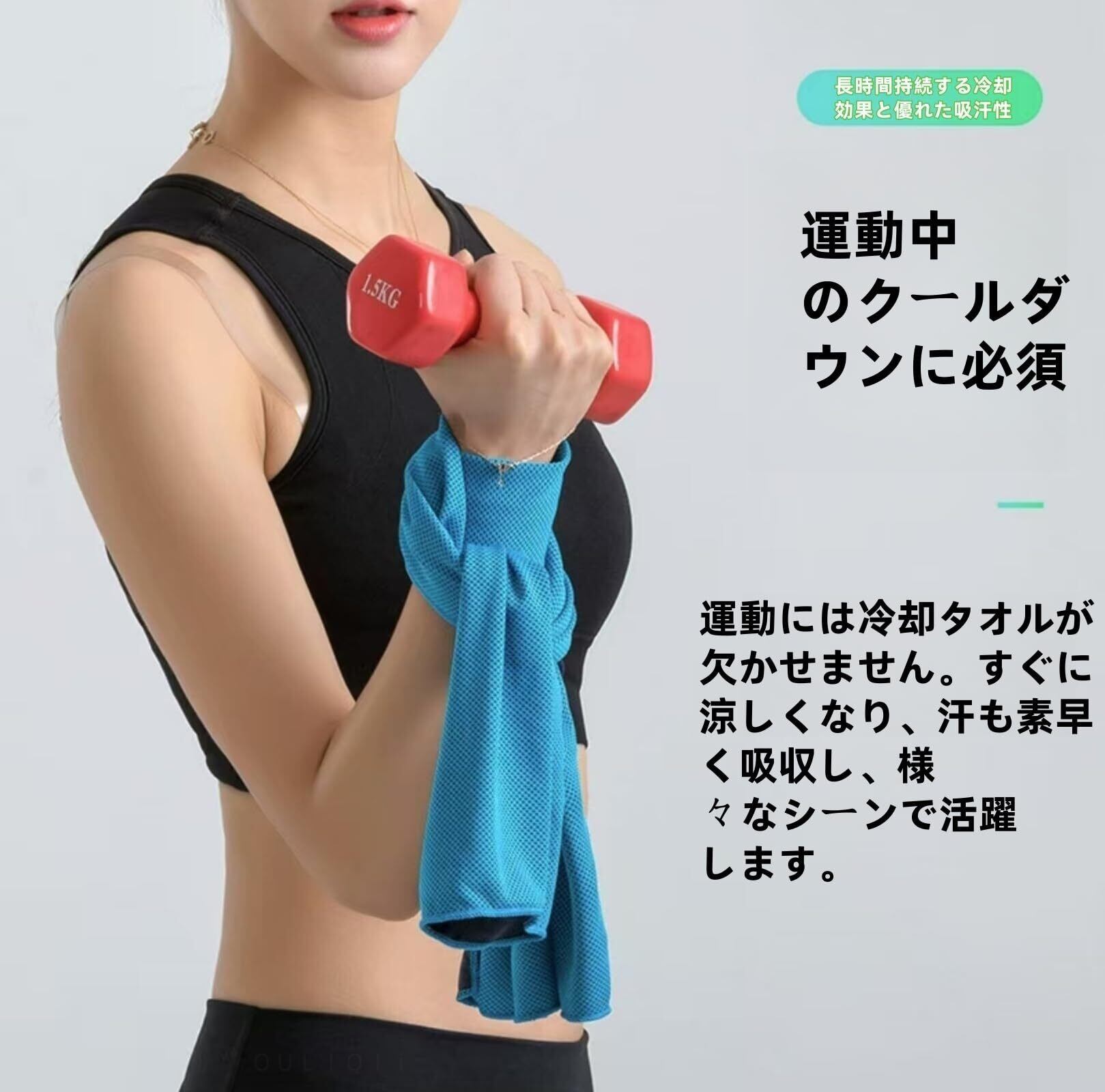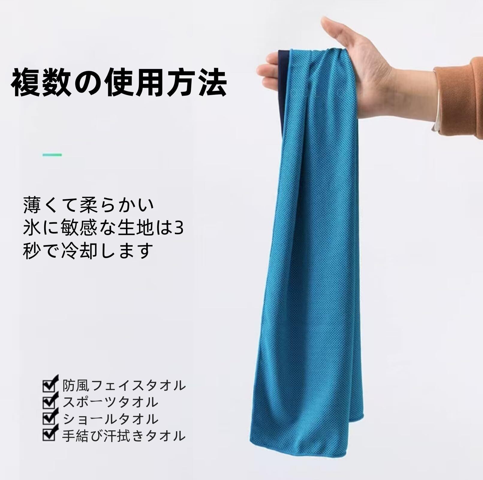 【高吸水性】冷感タオルは高吸水性の高品質コットンを採用し、肌表面の水分を素早く吸収し、肌をドライに保ちます。