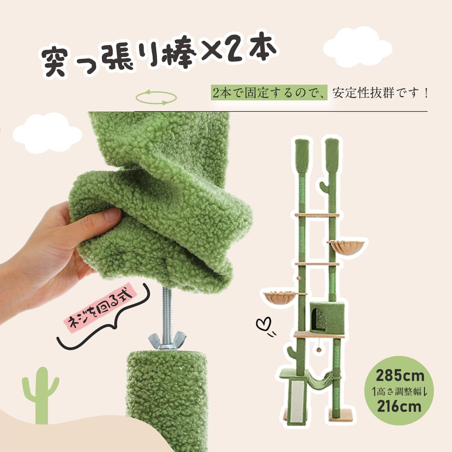 PETEPELA(ぺテぺラ) キャットタワー 突っ張り ツッパリ スリム 多頭飼い サボテン コンパクト つっぱり ハンモック×3 爪研ぎ つめとぎ 省スペース 運動不足解消 おもちゃ シンプル かわいい おしゃれ - グリーン 高さ調整幅216~285cm | BASE SHOP