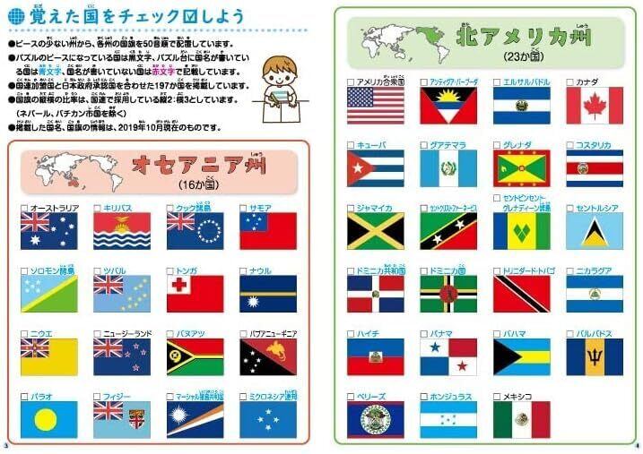 【セット内容】パズル台:1個、国別ピース:85個、国銘確認地図(裏面:世界の遺産すごろく):1枚、世界の気候区分(裏面:世界のことば):1枚、州別白地図:6枚、ピース収納袋:1枚、解説書&世界の国旗チェックブック×1部、コマ・サイコロ用シート:各1