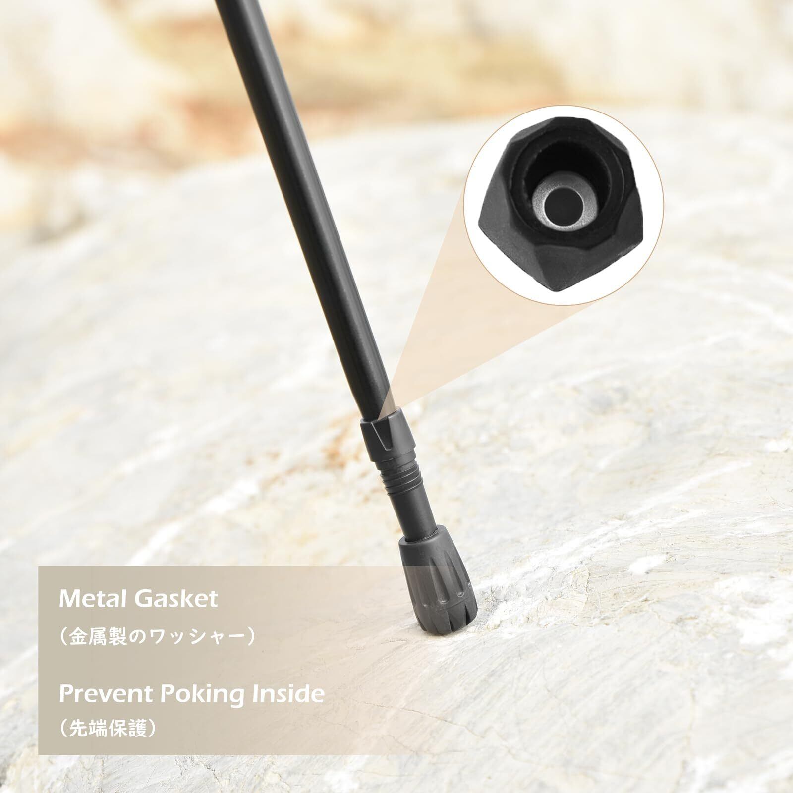 【耐久性】ビルトイン金属ワッシャーで耐用性が大幅に向上され、キャップとトレッキングポールの摩擦でキャップが変形することも押えます、そして先端は厚くしていて耐久性も強くなります