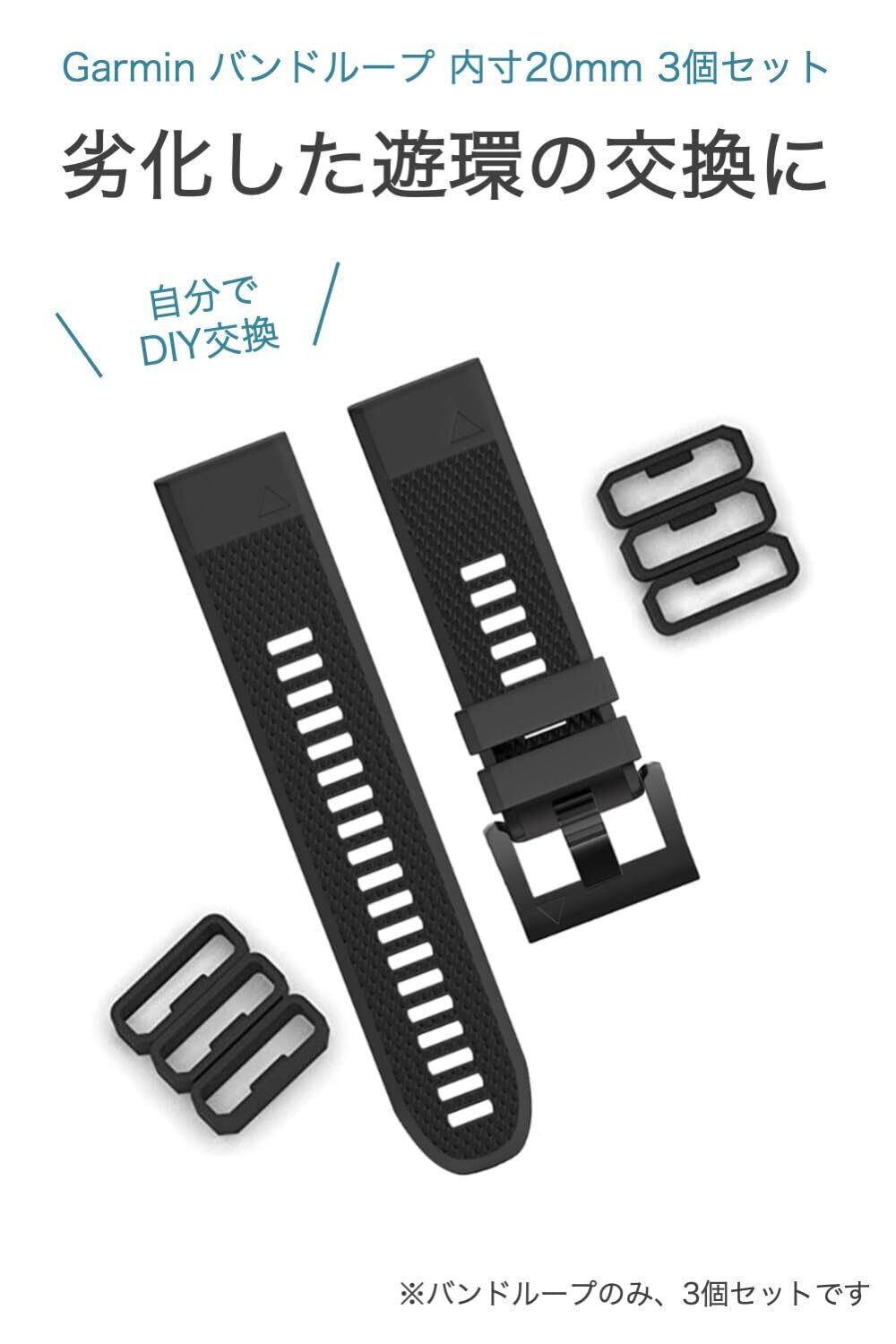 [wumio] Garmin バンドループ 内寸20mm 3個セット 遊環 シリコン 腕時計バンド ループ ガーミン リング 補修 交換 予備 venu sq vivoactive3 forerunner245 645