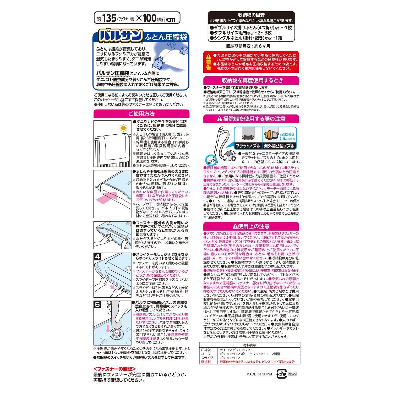 レック(LEC) バルサン ふとん圧縮袋 ファスナー式 LL ダブルサイズ布団用 2枚入 (ダニよけ 防虫 Wパワー) 135×100cm