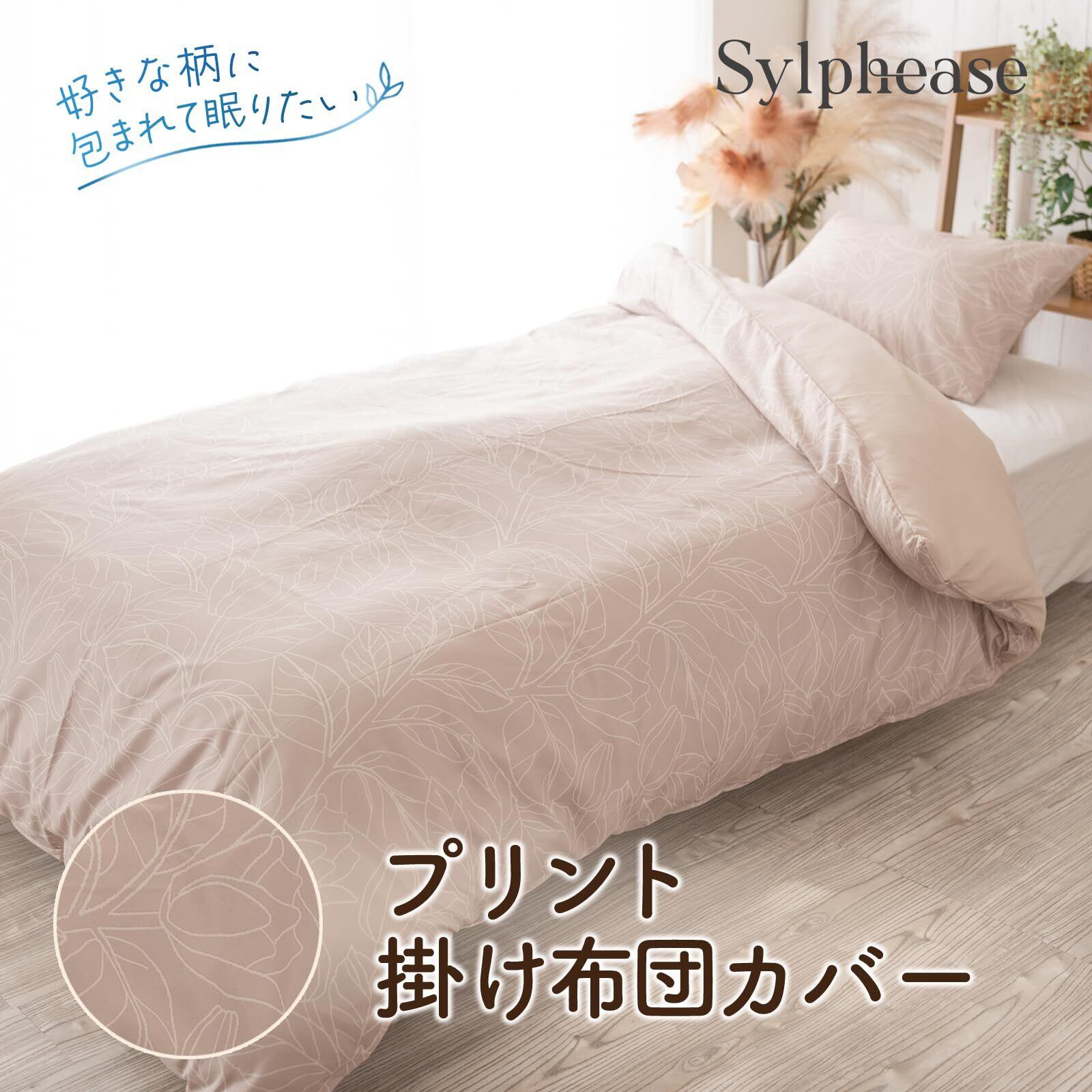 シルフィーズ 掛けふとんカバー ダブル 190×210cm かけ布団カバー ピーチスキン 寝具 ずれ防止 柄 カラー入力 掛布団カバー 掛けカバー オールシーズン 軽い 洗える リーフ柄 ベージュ