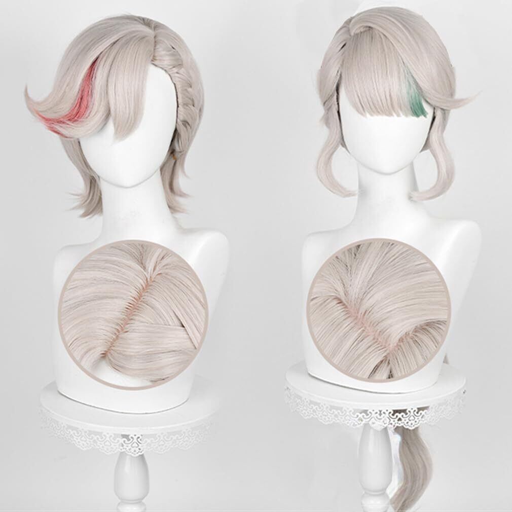 LAOBAO コスプレ ウィッグ リネット Lynette ポニーテール グレー 緑 メッシュ カツラ 耐熱 変装用 コスチューム小物 パーティー ハロウィン 仮装 文化祭 イベント cosplay wig (リネット)