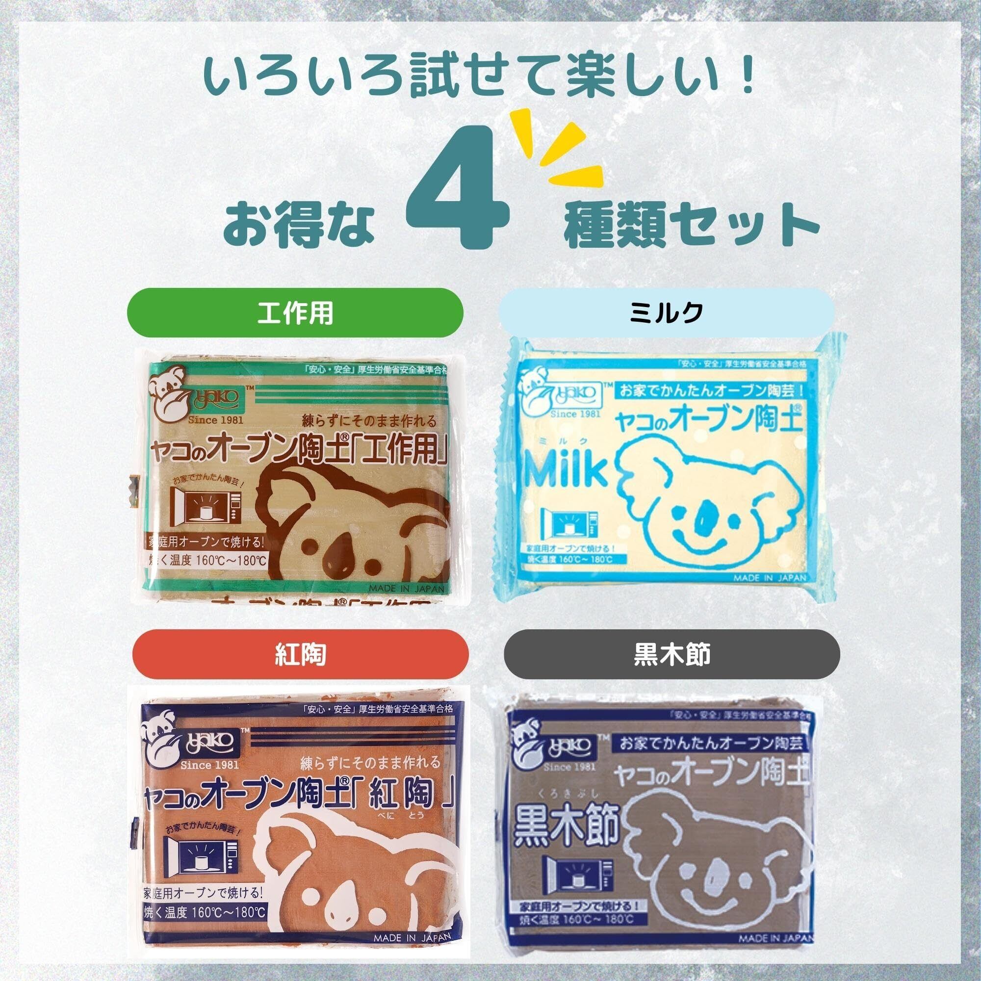 ヤコ オーブン陶土 [4色セット] 工作用 ミルク 紅陶 黒木節 オーブン粘土