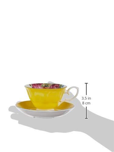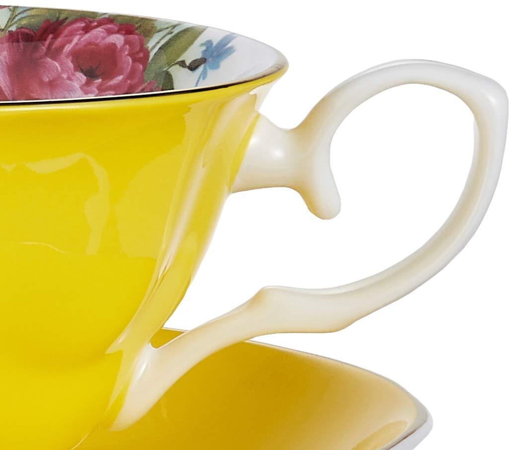 ロイヤルアーデン コーヒー ティー カップ ソーサー セット 陶器 電子レンジ対応 ボーンチャイナ 250ml 花柄 薔薇 イエロー 37142
