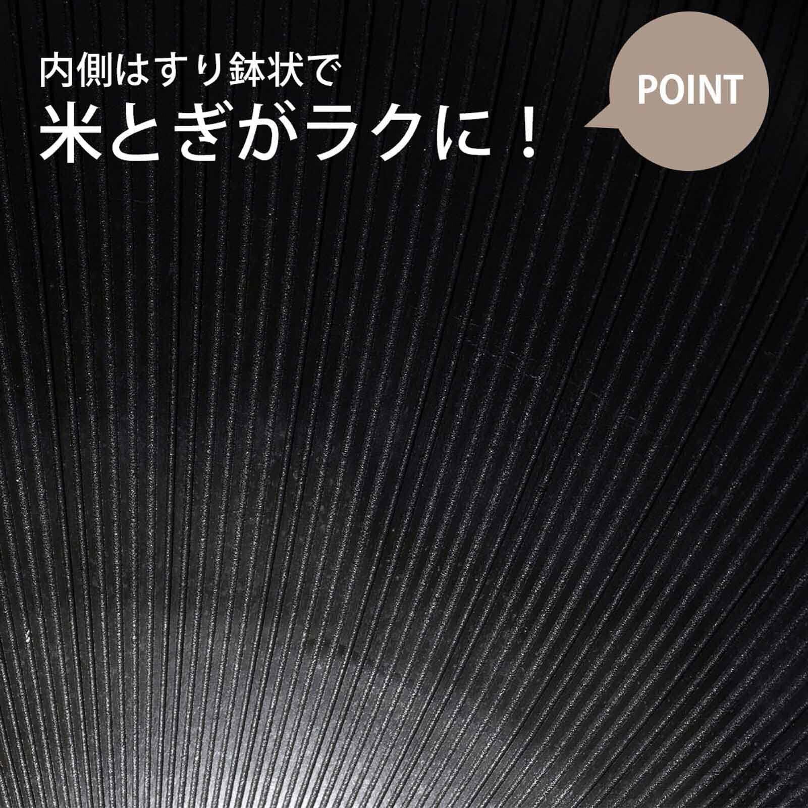 下村企販 米磨ぎボウル 6合 【日本製】 内側はすり鉢状 あふれにくい 水切り穴付き 移し替えやすい取手付き とぎやすい 洗米カップ ザル 大容量 ブラック プラスチック 燕三条 24522 | BASE SHOP
