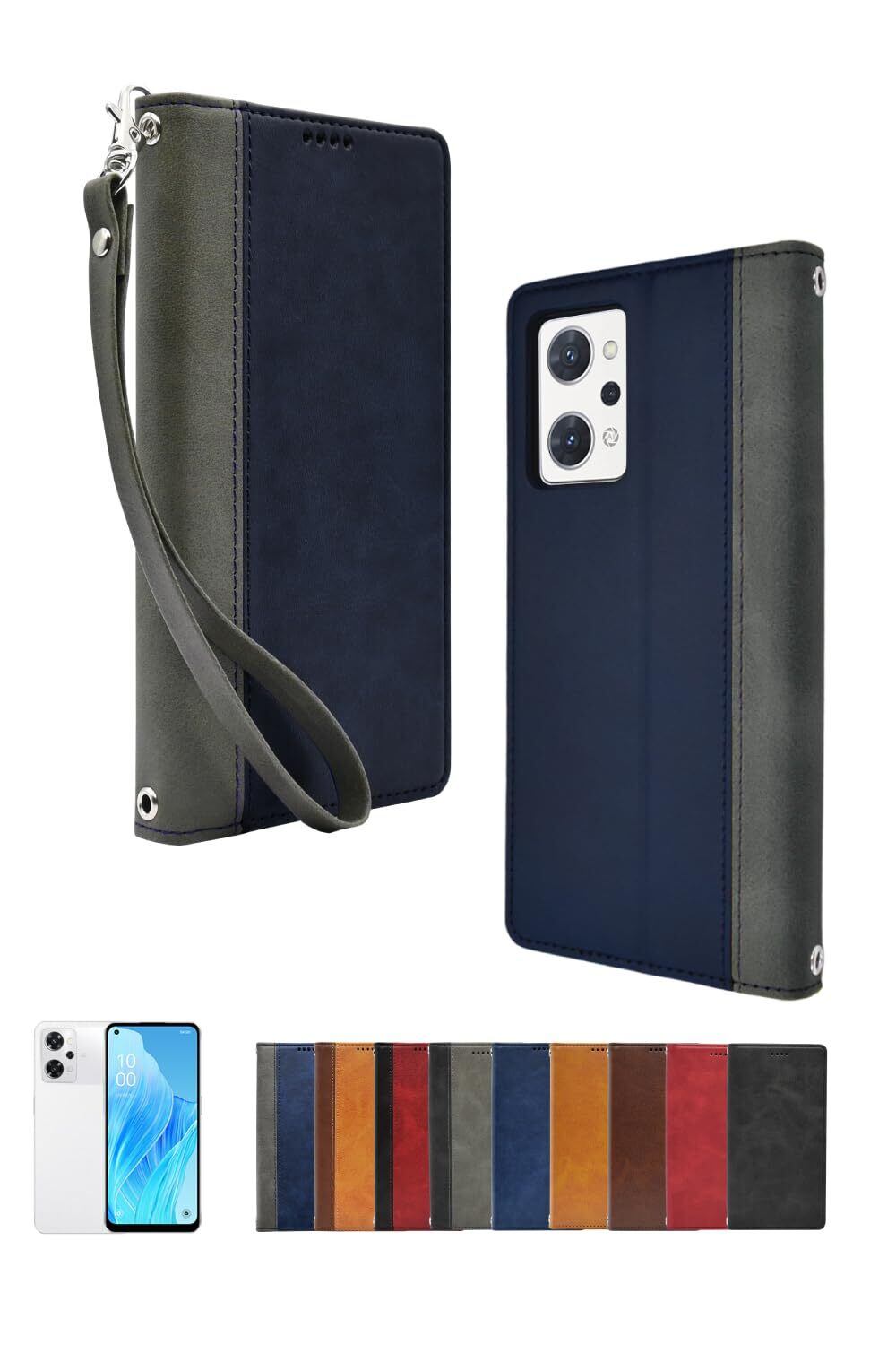 シズカウィル OPPO Reno9 A / Reno7 A ケース カバー 手帳型 本革調 レザーケース 1個入り ネイビー×グレー