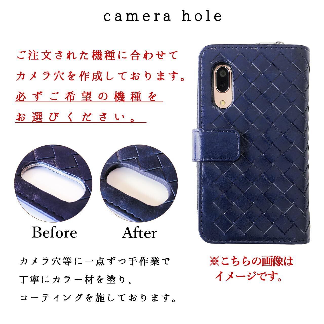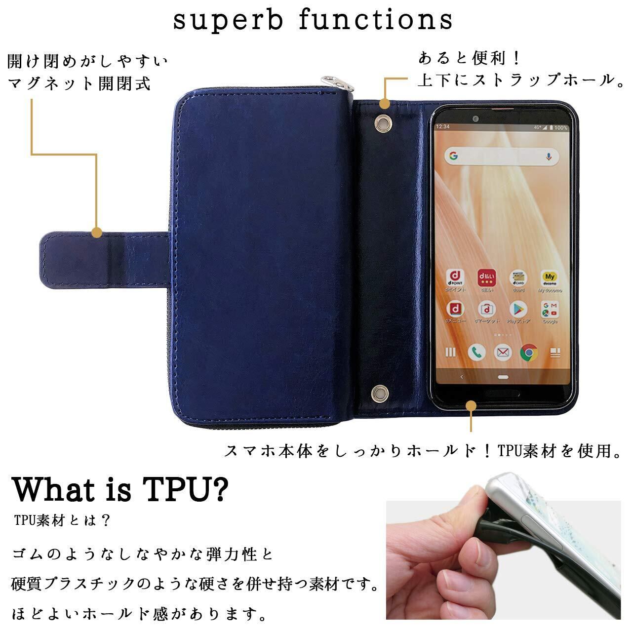 ストラップ穴付き(中央上下部2箇所)のため、チェーンを付けたりストラップを付けることが可能となります。手帳の素材は合皮 PUレザーとなります。電源ボタン・音量ボタン等はケースの上から押す仕様となります。予めご了承ください。